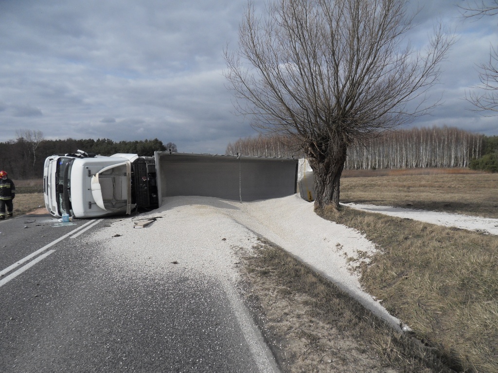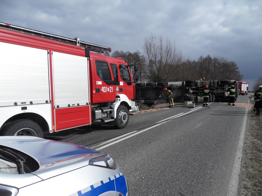 Wypadek samochodu ciężarowego przewożącego kruszywo.