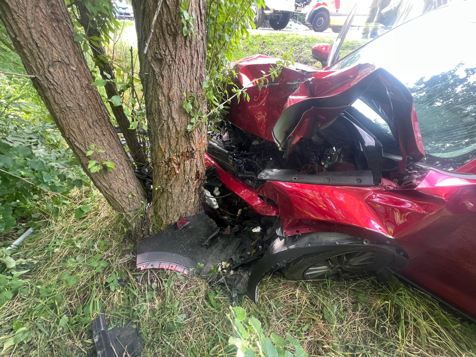 Wypadek samochodu osobowego w miejscowości Skorzów, gm. Busko-Zdrój
