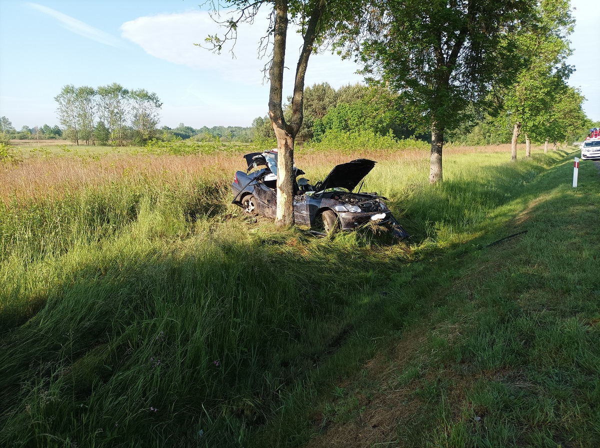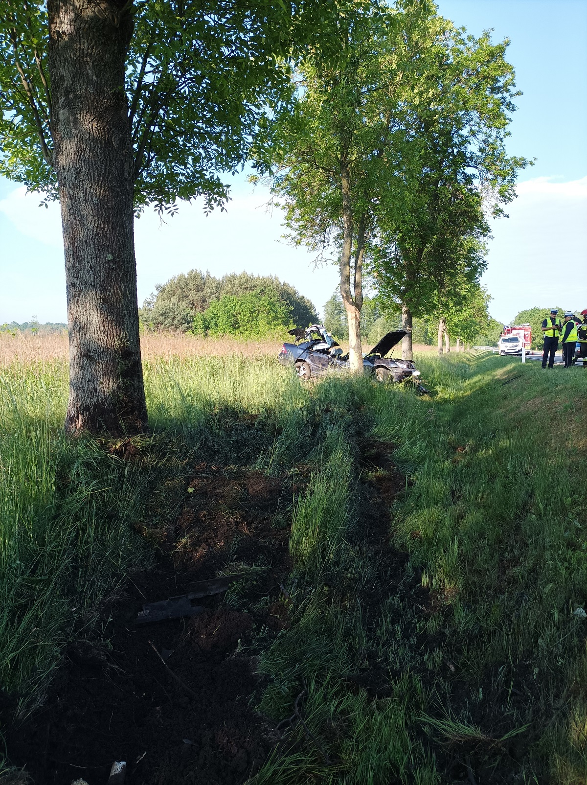 26 maja 2022 roku w godzinach porannych na Stanowisko Kierowania Komendanta Powiatowego Państwowej Straży Pożarnej w Busku-Zdroju wpłynęło zgłoszenie o wypadku drogowym w miejscowości Wełnin, gmina Solec Zdrój. Dyżurny do zdarzenia zadysponował dwa zastępy z JRG PSP z Buska – Zdroju oraz jednostki OSP Solec-Zdrój i OSP Błotnowola. Po przybyciu na miejsce zdarzenia JOP i przeprowadzeniu rozpoznania stwierdzono, że samochód osobowy zjechał z drogi i uderzył w drzewo. Pojazd znajdował się poza jezdnią, a w jego środku zakleszczony był kierowca (podróżował sam). Działania JOP polegały na wykonaniu dostępu do poszkodowanego przy użyciu narzędzi hydraulicznych, wydobyciu mężczyzny na zewnątrz pojazdu i przekazaniu pod opiekę ZRM. Niestety ze względu na odniesione obrażenia lekarz stwierdził zgon mężczyzny. Równocześnie z prowadzonymi działaniami ratowniczymi przeszukano teren wokół zdarzenia nie stwierdzając dodatkowych osób poszkodowanych, następnie odłączono akumulator w uszkodzonym pojeździe oraz sprawdzono czy nie doszło do wycieków płynów eksploatacyjnych - brak zagrożenia.