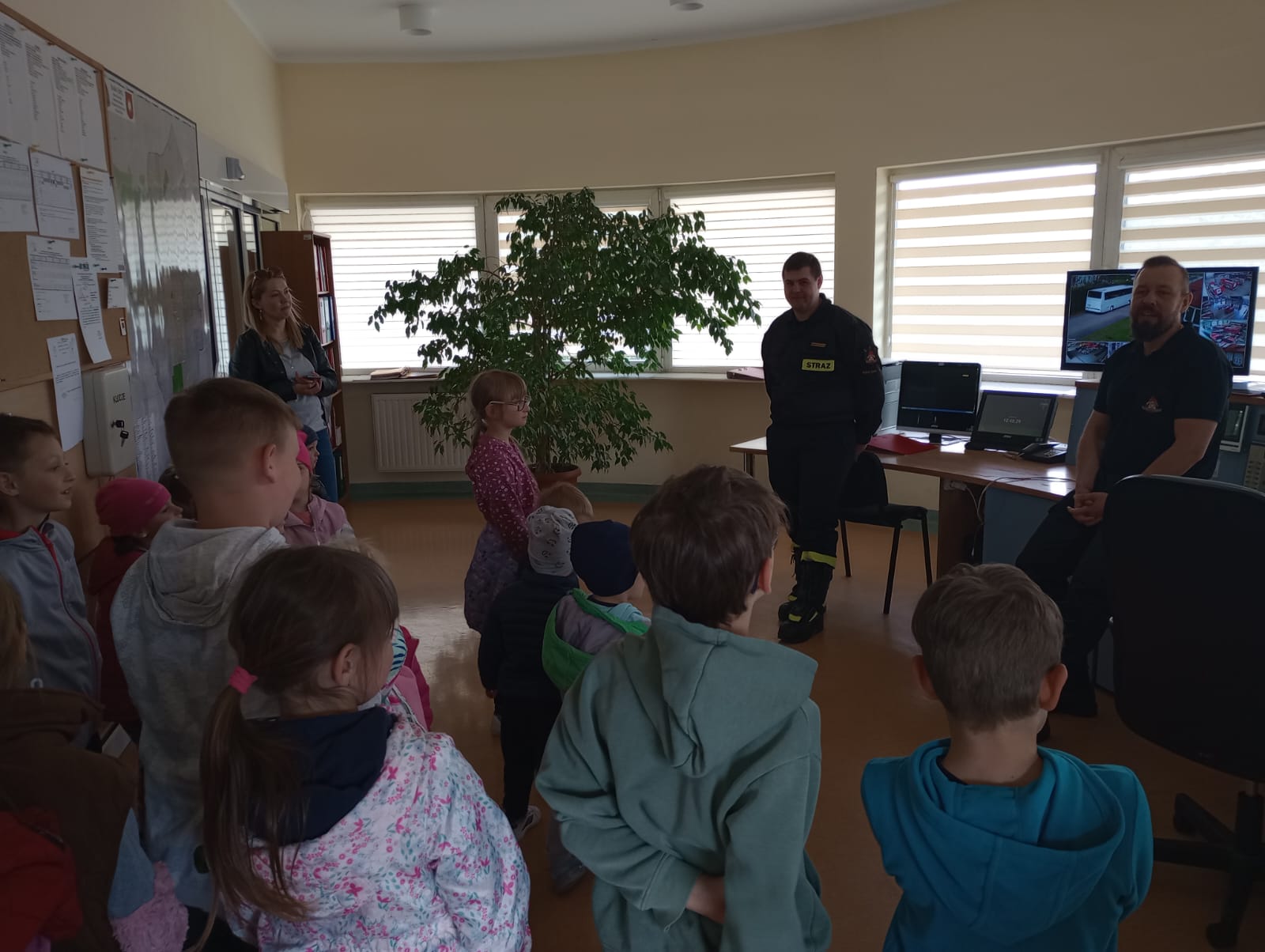 Dzieci zobaczyły również Stanowisko Kierowania Komendanta Powiatowego. Największy entuzjazm i podziw wzbudziła wśród uczniów prezentacja samochodów oraz sprzętu ratowniczo-gaśniczego. Na zakończenie uczestnicy otrzymali drobne upominki od strażaków. W spotkaniu uczestniczyło 23 dzieci wraz z opiekunami.