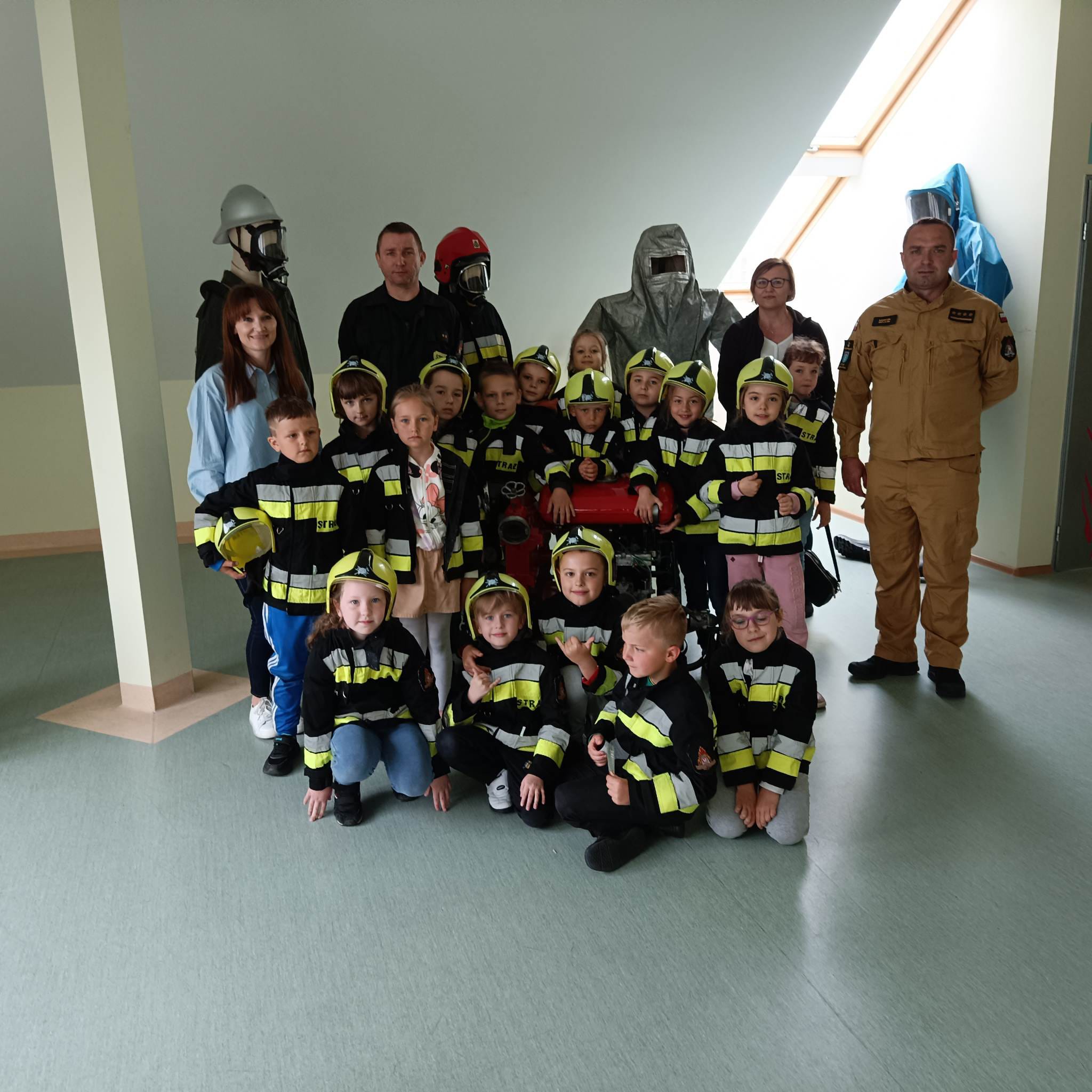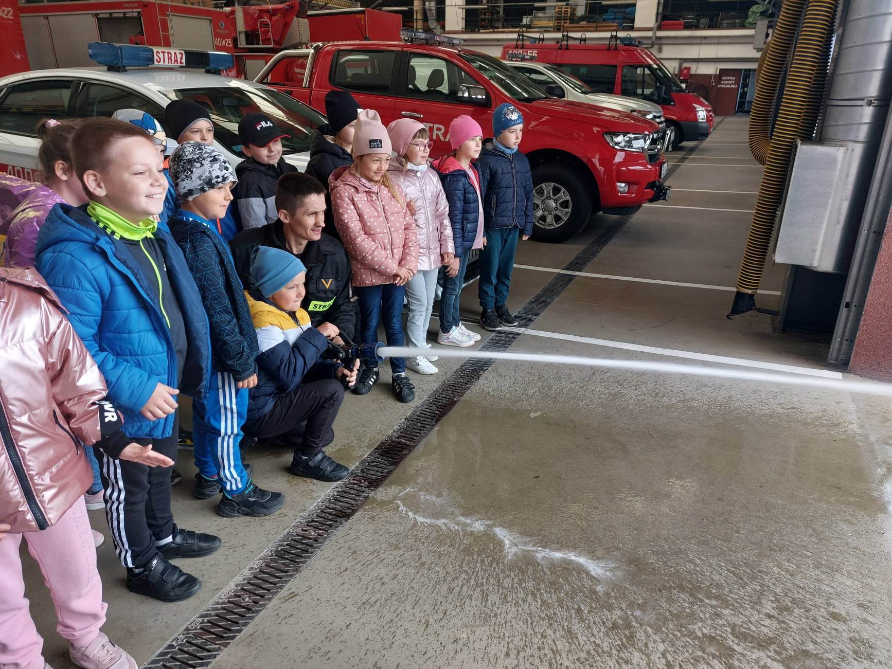 18 maja 2023 roku Komendę Powiatową Państwowej Straży Pożarnej w Busku-Zdroju odwiedziły dzieci z Zespołu Szkolno-Przedszkolnego w Wiślicy. W ramach spotkania wzięli udział m.in. w zajęciach sali edukacyjnej „Ognik”, podczas których zobaczyły między innymi z jakimi zagrożeniami mogą się spotkać w otaczającym środowisku, jak rozprzestrzenia się dym w warunkach pożaru, jak działają czujki dymu, tlenku węgla oraz do jakich zagrożeń może doprowadzić niewłaściwe użytkowanie sprzętu domowego. Buscy strażacy zadbali o atrakcyjną oprawę spotkania, były małe strażackie hełmy oraz mundury. Strażacy zaprezentowali dzieciom wyposażenie samochodów gaśniczych, ubranie specjalne oraz było lanie wody do celu. W spotkaniu uczestniczyło 40 dzieci wraz z opiekunami.