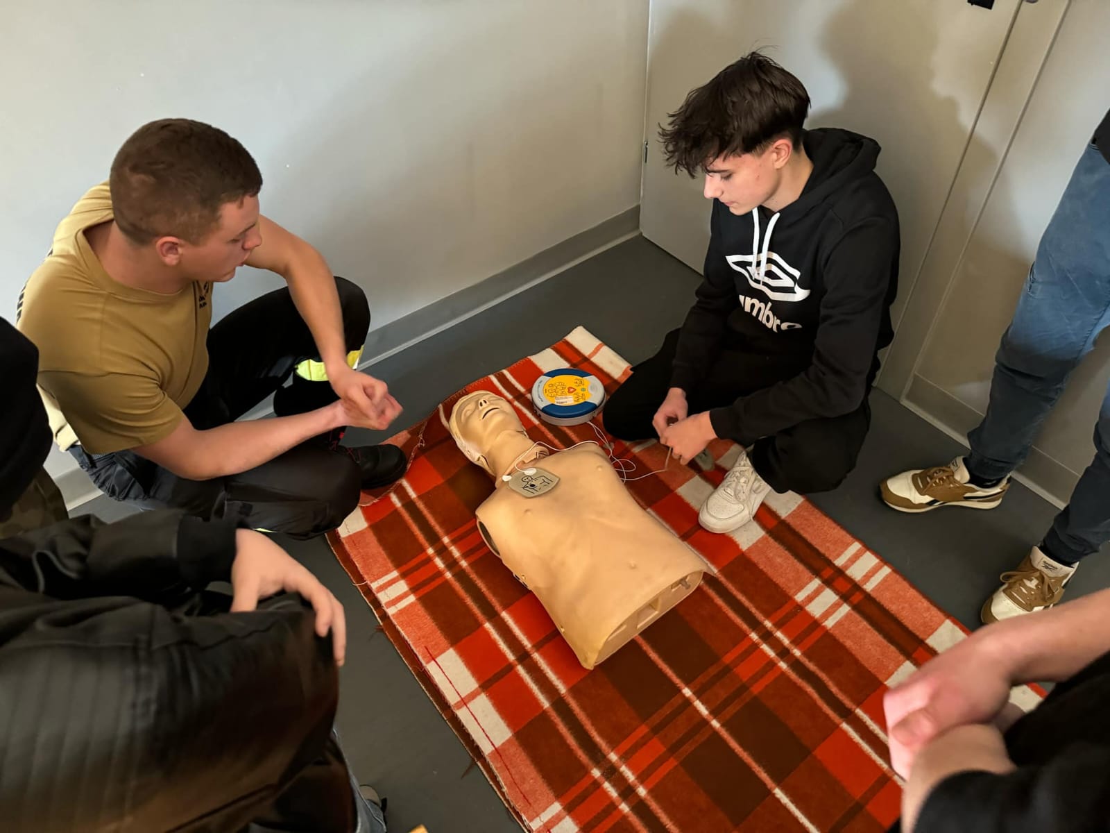 Podczas zajęć przekazano młodym adeptom pożarnictwa zasady postępowania z osobami w przypadku zasłabnięcia, zadławienia a także nagłego zatrzymania krążenia. Przy wykorzystaniu fantomów przećwiczono wykonywanie masażu serca u osób dorosłych, dzieci oraz niemowląt. Omówiono budowę i zasady użycia AED. Podczas spotkania podkreślono istotę udzielania pierwszej pomocy w nagłych sytuacjach, omówiono problem stresu a także istotę edukacji z zakresu udzielania pierwszej pomocy.