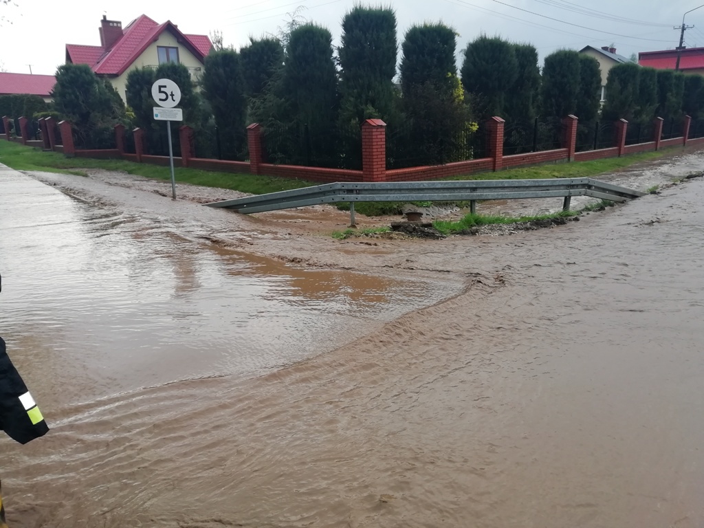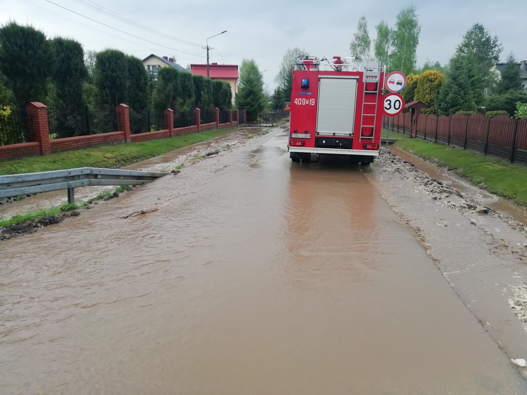 14 maja br. w godzinach popołudniowych do Stanowisko Kierowania Komendanta Powiatowego Państwowej Straży Pożarnej w Busku – Zdroju wpłynęło zgłoszenie, dotyczące zalanych posesji w miejscowości Folwarki gm. Stopnica. Na miejsce zdarzenia zostały zadysponowane siły i środki z pobliskich OSP tj: 2 zastępy z OSP Stopnica oraz OSP Bosowice i OSP Smogorzów. Przybyłe na miejsce zdarzenia zastępy zabezpieczyły miejsce zdarzenia oraz przystąpiły do rozpoznania sytuacji. W wyniku rozpoznania stwierdzono, że gwałtowne opady atmosferyczne spowodowały silny napływ wody opadowej z okolicznych pól do przydrożnych rowów, które nie były w stanie odebrać tak dużych ilości wody. Piętrząca się woda nie mieszcząc się w rowach spowodowała zalanie w dwóch posesjach pomieszczeń garażu i piwnicy, oraz wtargnęła na inne posesje nie wdzierając się jednak do budynków położonych na tych posesjach. Z chwilą stopniowego opadania wody w przydrożnych rowach, przystąpiono do usuwania jej z zalanych pomieszczeń oraz układania worków z piachem w newralgicznych miejscach, na wypadek ponownego wystąpienia zjawiska. Na miejscu prowadzonych działań obecny był zastępca komendanta powiatowego PSP w Busku-Zdroju oraz zastępca burmistrza Miasta i Gminy Stopnica. Z chwilą ustabilizowania się sytuacji, jednostki zakończyły działania i wróciły do remiz.