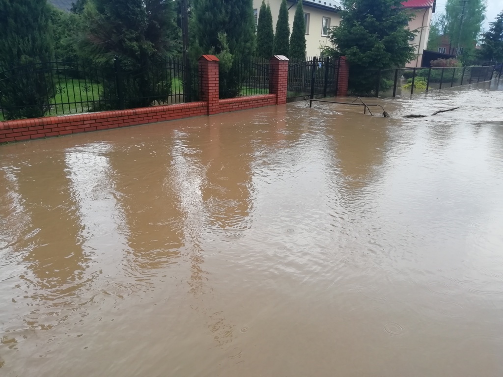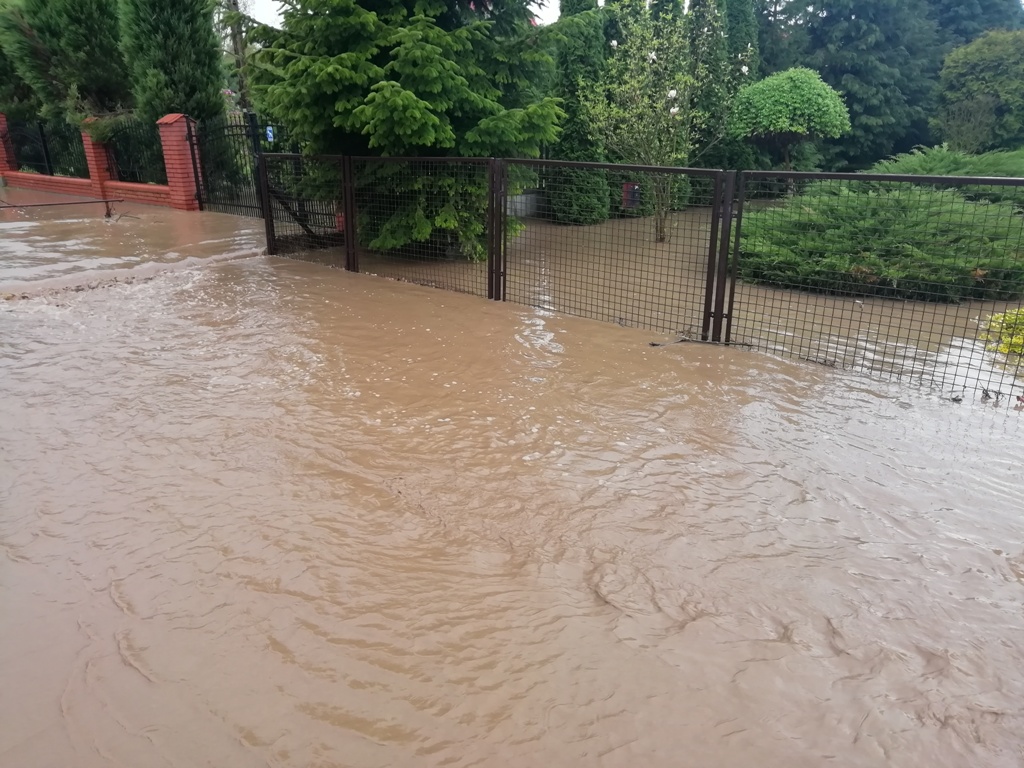 Zalane posesje na skutek gwałtownych opadów atmosferycznych w miejscowości Folwarki gm. Stopnica