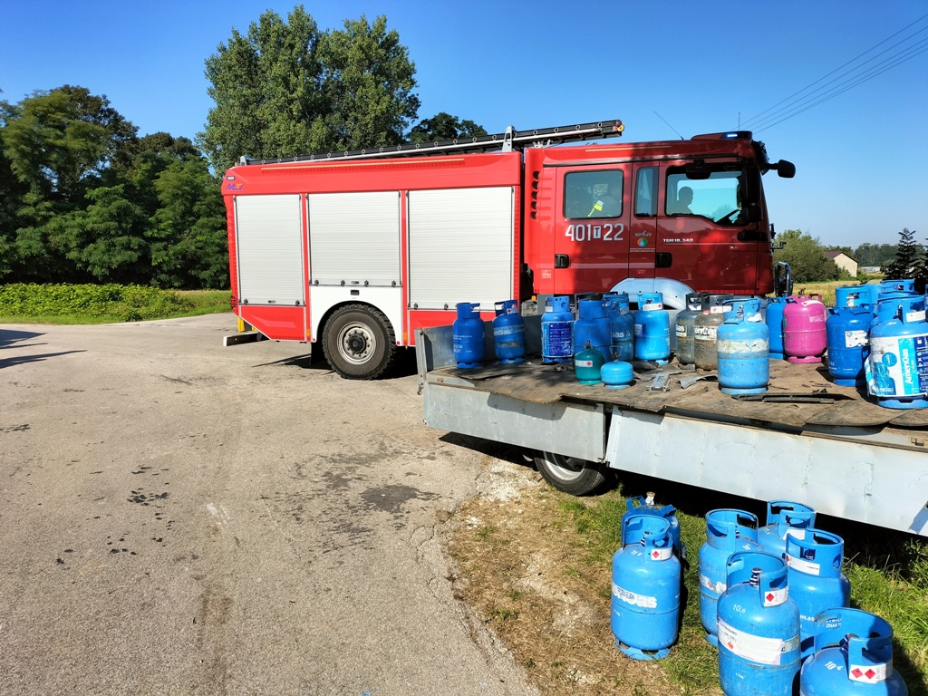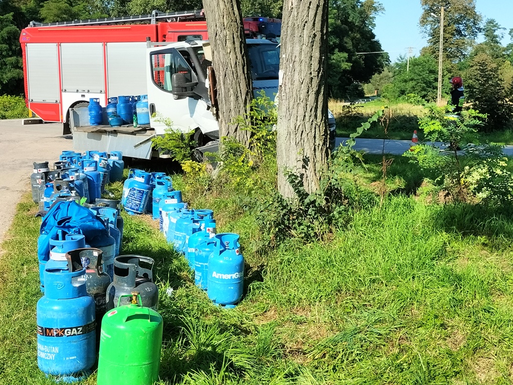 9 września br. o godz. 8:50 do Stanowiska Kierowania Komendanta Powiatowego Państwowej Straży Pożarnej w Busku – Zdroju wpłynęło zgłoszenie o wypadku komunikacyjnym na drodze powiatowej w miejscowości Kółko Żabieckie gmina Pacanów. Dyżurny do zdarzenia zadysponował dwa zastępy z JRG PSP Busko- Zdrój oraz dwie jednostki Ochotniczej Straży Pożarnej z terenu gminy Pacanów. Po dojeździe na miejsce służb ratowniczych i przeprowadzeniu rozpoznania stwierdzono, że na skrzyżowaniu dróg powiatowych doszło do zderzenia samochodu osobowego VW Passat i dostawczego Iveco przewożącego 91 sztuk 11 kg butli z gazem propan-butan. Dodatkowo samochód dostawczy w wyniku wypadku uderzył w drzewo. W wyniku zdarzenia z części ładunkowej samochodu Iveco na jezdnię wypadło część przewożonego ładunku – butle 11kg z gazem propan-butan, które nie uległy rozszczelnieniu. Pojazdami podróżowało łącznie trzy osoby, z których jedna została zabrana do szpitala, a dwie pozostały na miejscu akcji. Działania zastępów straży pożarnej polegały na zabezpieczeniu miejsca zdarzenia, odłączeniu akumulatorów w uszkodzonych pojazdach oraz uprzątnięciu z jezdni butli. Po czynnościach Policji samochód osobowy został zabrany przez pomoc drogową, natomiast butle zostały przeładowane na podstawiony samochód dostawczy przez właściciela firmy dystrybucyjnej.