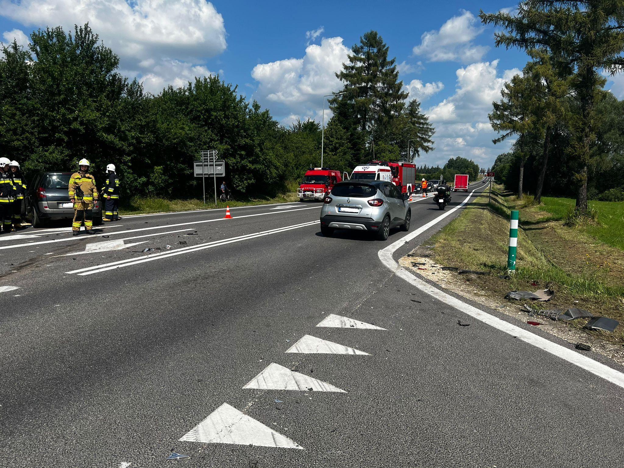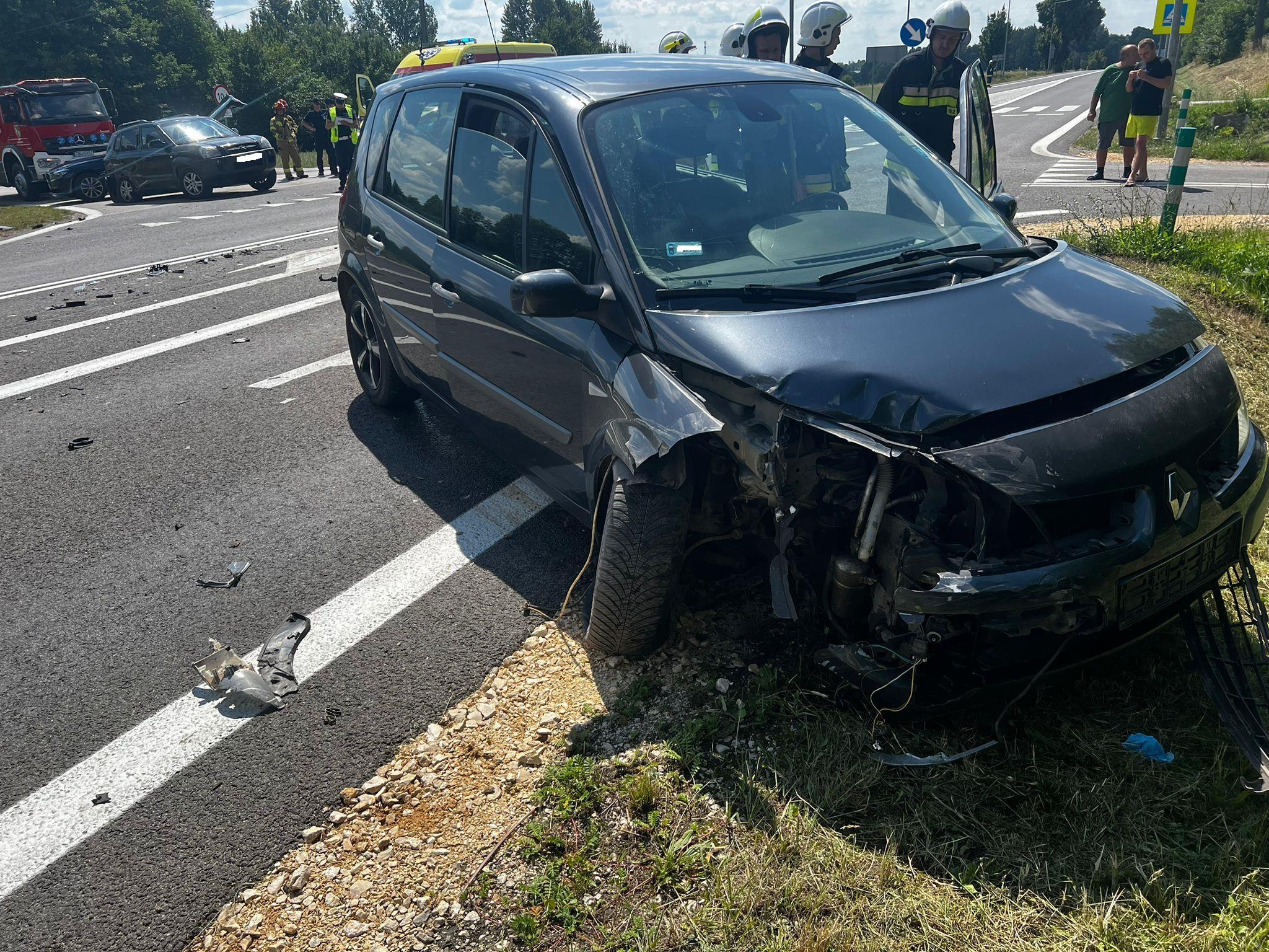 23 czerwca 2024 roku około godz. 10:02 do Stanowiska Kierowania Komendanta Powiatowego Państwowej Straży Pożarnej w Busku – Zdroju wpłynęło zgłoszenie o zdarzeniu dwóch samochodów osobowych na DK73. Do zdarzenia zostały zadysponowane siły i środki z jednostki ratowniczo- gaśniczej PSP w Busku- Zdroju oraz zastępy z OSP Pacanów. Po przybyciu na miejsce zdarzenia JOP i przeprowadzonym rozpoznaniu stwierdzono, że zderzeniu uległy dwa samochody osobowe: Hyundai Tucson i Renault Scenic. Hyundai Tucson, którym podróżowało pięć osób w tym troje dzieci znajdował się na skrzyżowaniu drogi, natomiast Renault Scenic, którym podróżował sam kierowca na poboczu jezdni. Osoby uczestniczące w zdarzeniu opuściły pojazdy o własnych siłach, znajdowali się poza pojazdami pod opieką ZRM. Działania JOP polegały na zabezpieczeniu miejsca zdarzenia, odłączeniu zasilania w rozbitych pojazdach. Dzieci podróżujące pojazdem Hyundai zostały przebadane przez Ratowników Medycznych i pozostały na miejscu zdarzenia, natomiast kierowca z samochodu Renault został zabrany do szpitala.