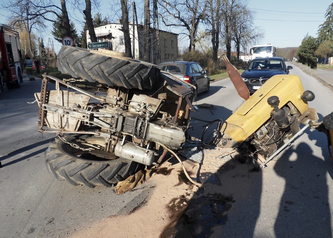 Zderzenie samochodu osobowego z ciągnikiem rolniczym w miejscowości Zborów gmina Solec Zdrój
