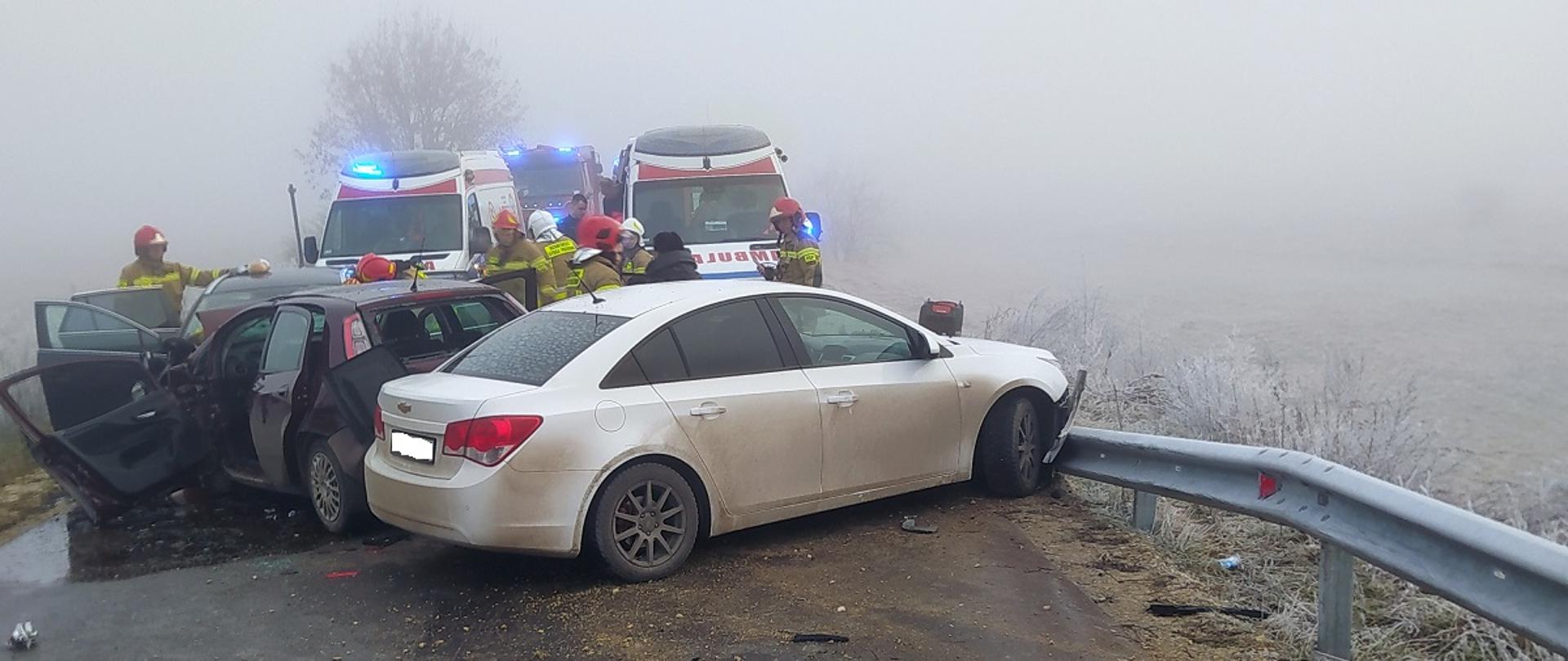 Zderzenie trzech samochodów osobowych w miejscowości Siesławice gmina Busko - Zdrój