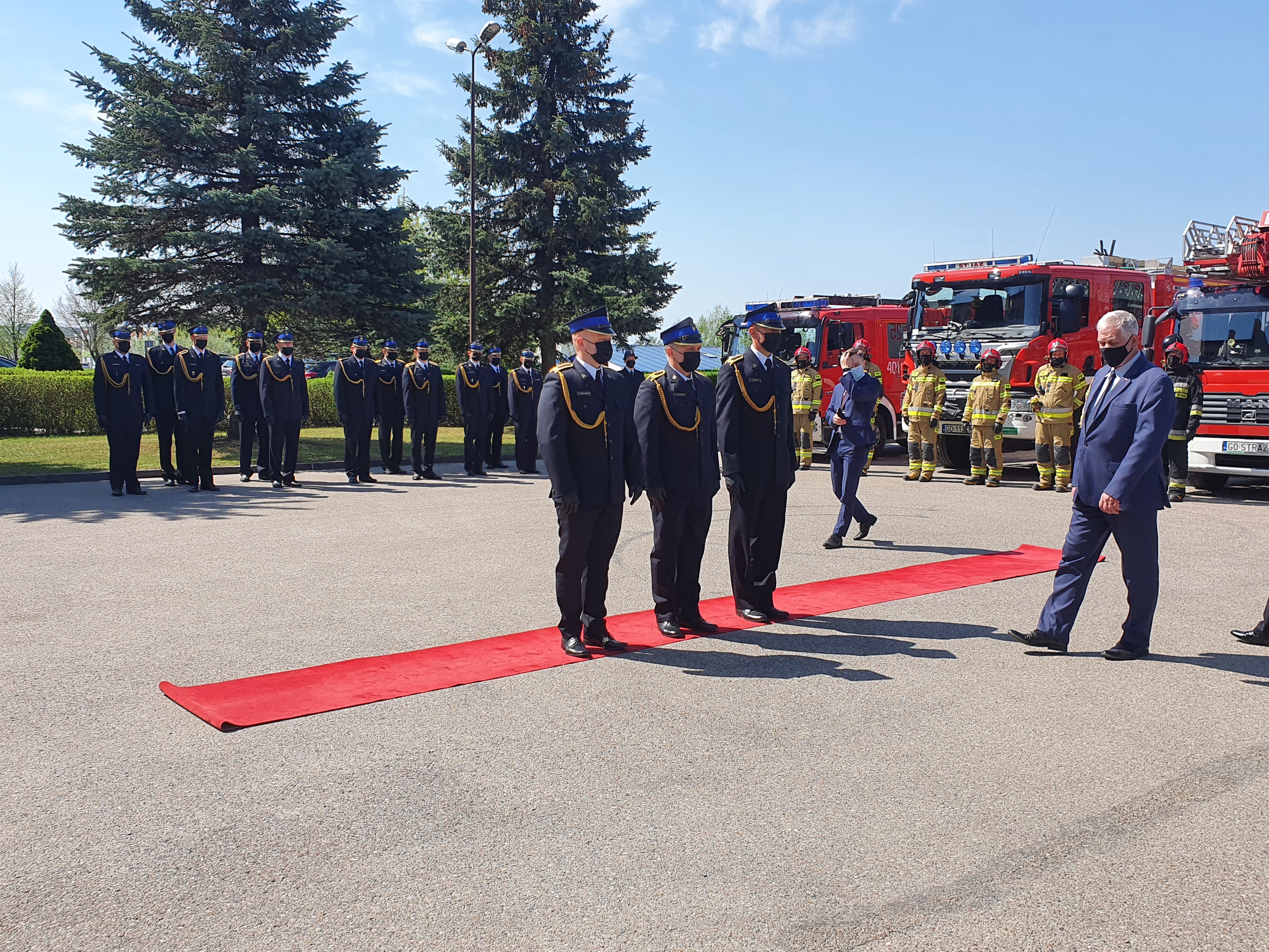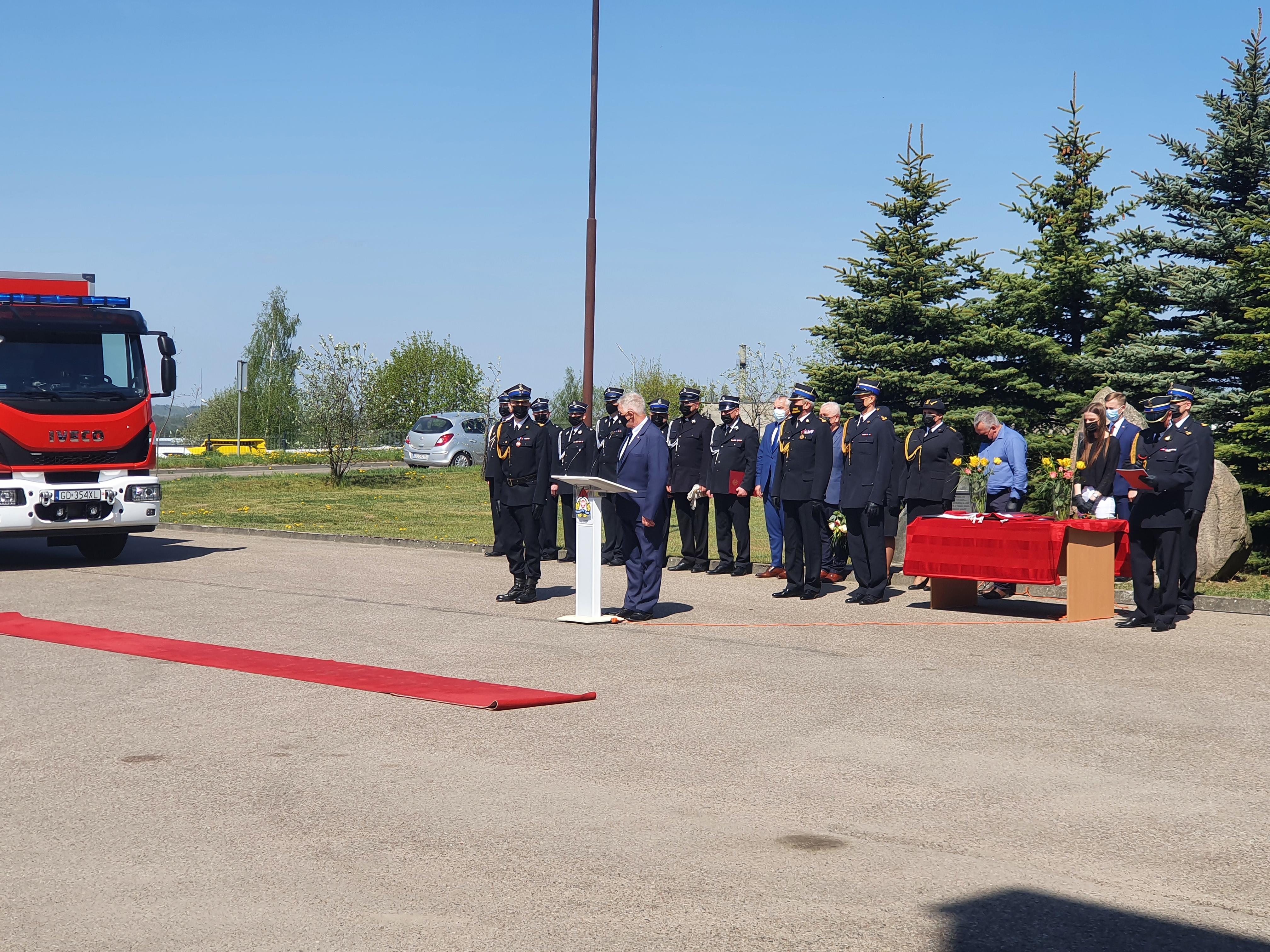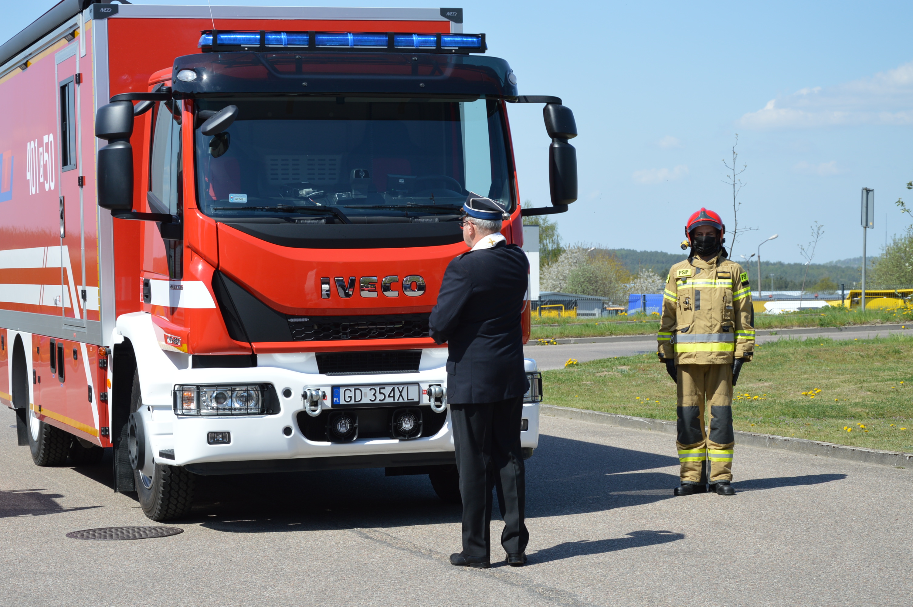 W trakcie uroczystości dokonano także poświęcenia i przekazania Jednostce Ratowniczo – Gaśniczej w Bytowie nowego samochodu specjalnego ze sprzętem ochrony dróg oddechowych.