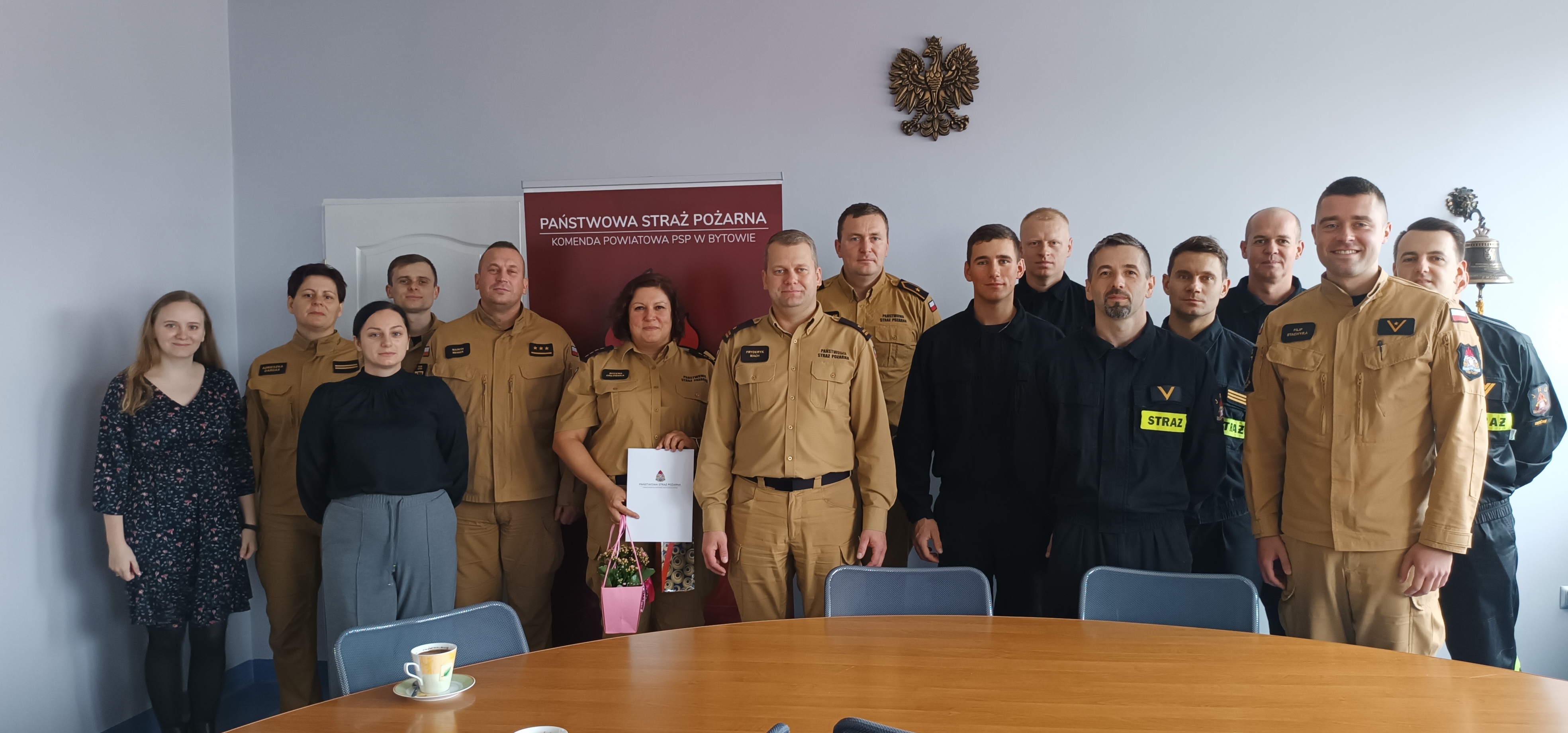 Do gratulacji i życzeń powodzenia w dalszej służbie dołączyła się obecna na zbiórce załoga Komendy Powiatowej PSP w Bytowie oraz Jednostki Ratowniczo-Gaśniczej w Bytowie.