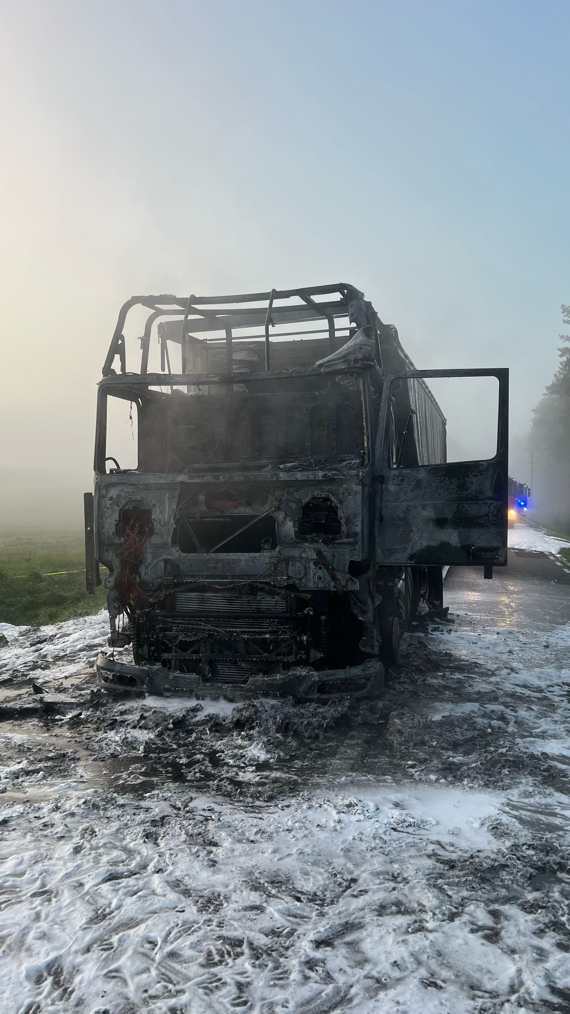 - 04:49 - Kartkowo - pożar samochodu ciężarowego z naczepą,