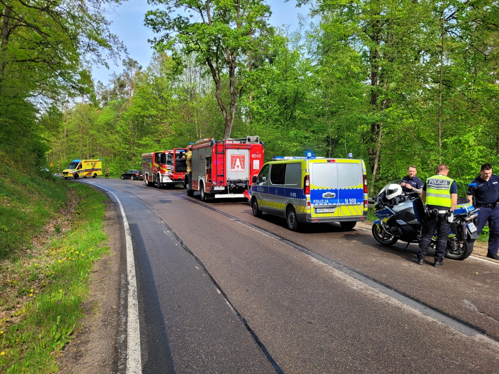 - 09:49 - Kramarzyny ul. Pomorska - zderzenie samochodu osobowego z motocyklem - 1 ofiara śmiertelna,