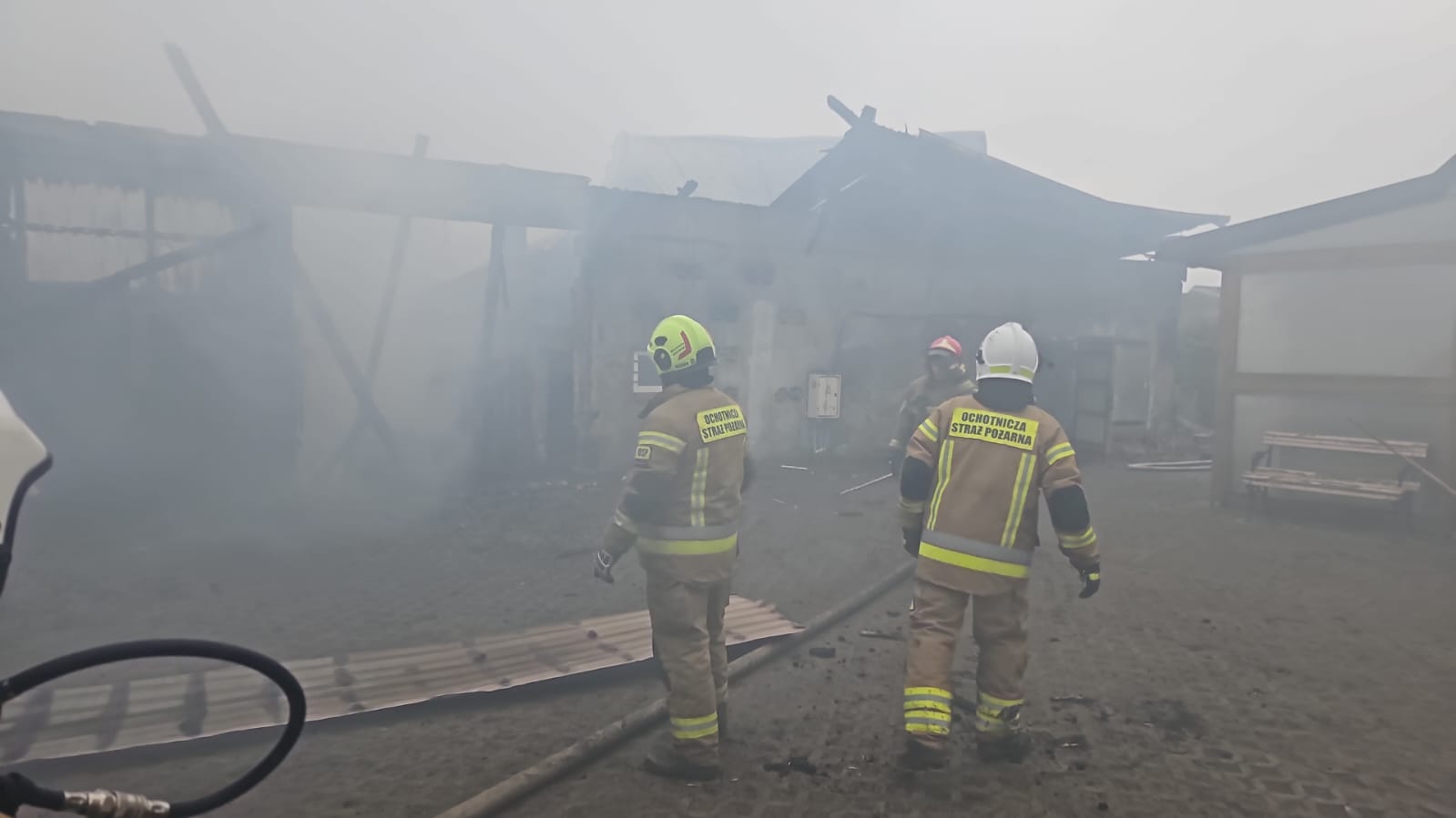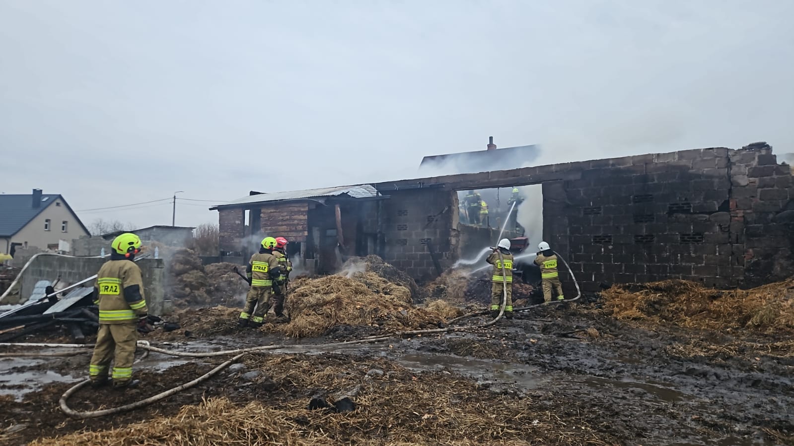 Prowadzone działania obejmowały m.in.: zabezpieczenie miejsca zdarzenia, podawanie środków gaśniczych w natarciu oraz ewakuację zwierząt i mienia