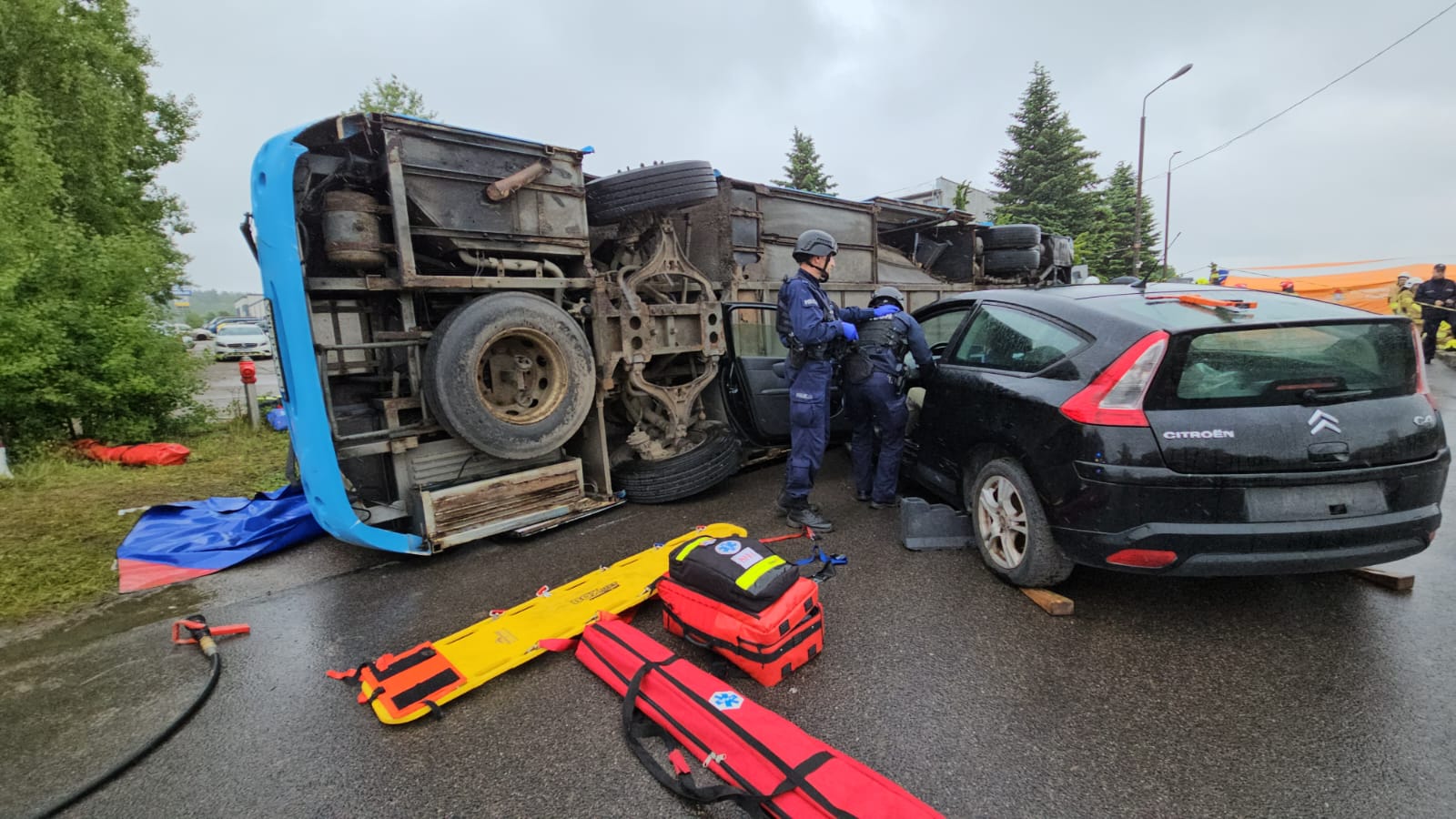 Scenariusz zakładał zderzenie autobusu przewożącego 25 pasażerów z samochodem osobowym. W wyniku symulowanego wypadku wiele osób doznało obrażeń.