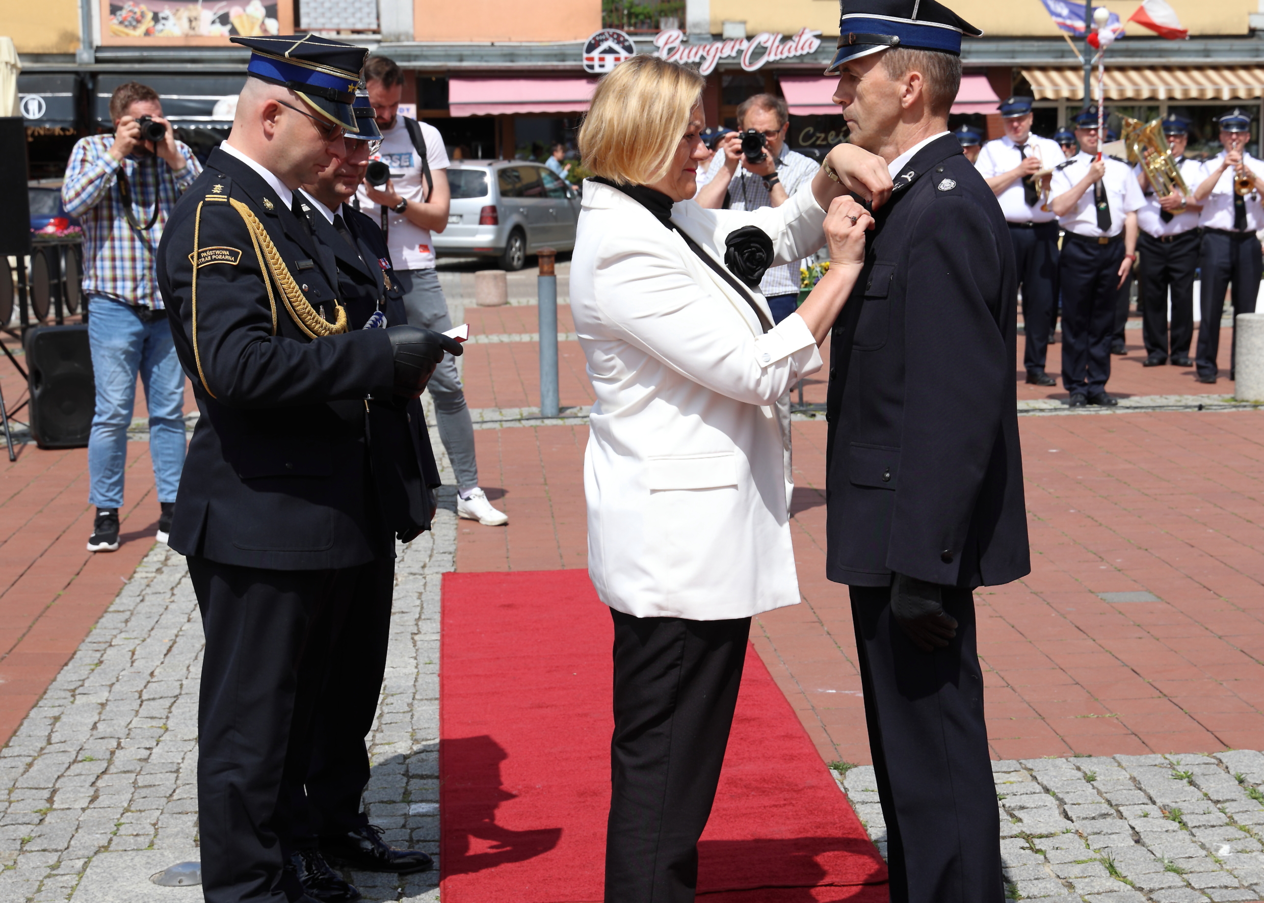 Kolejnym elementem uroczystości było wręczenie funkcjonariuszom Państwowej Straży Pożarnej i druhom Ochotniczych Straży Pożarnych powiatu bytowskiego odznaczeń, awansów na wyższe stopnie służbowe oraz wyróżnień.