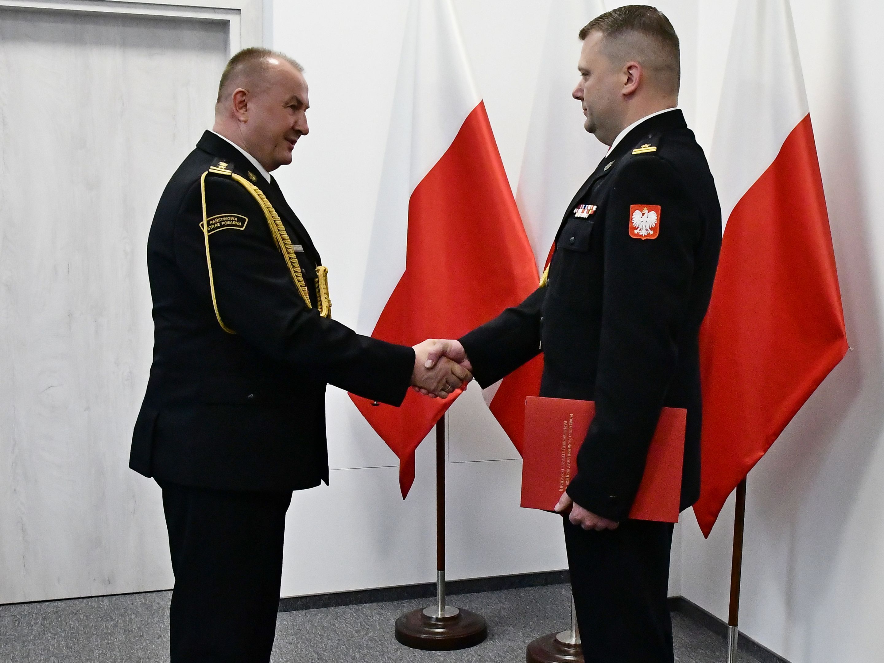 w Gdańsku pomorski komendant wojewódzki Państwowej Straży Pożarnej st. bryg. Jacek Niewęgłowski wręczył akt powołania na stanowisko komendanta powiatowego Państwowej Straży Pożarnej w Bytowie mł. bryg. Fryderykowi Mach.