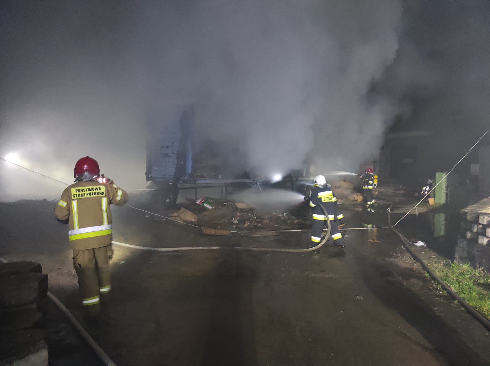 16 października 2020 roku o godzinie 21:16 dyżurny stanowiska kierowania Komendanta Powiatowego PSP w Bytowie przyjął zgłoszenie o pożarze naczepy samochodu ciężarowego w pobliżu budynków fabryki mebli.