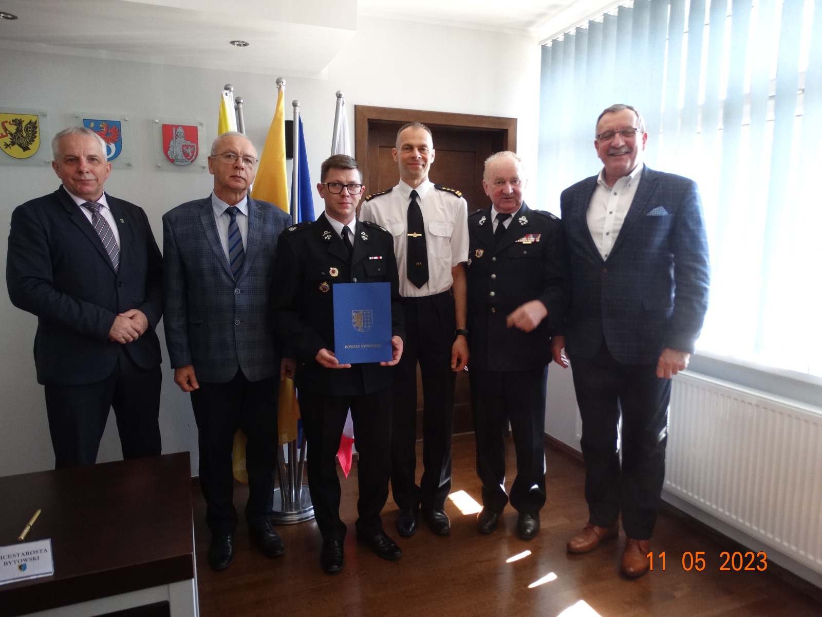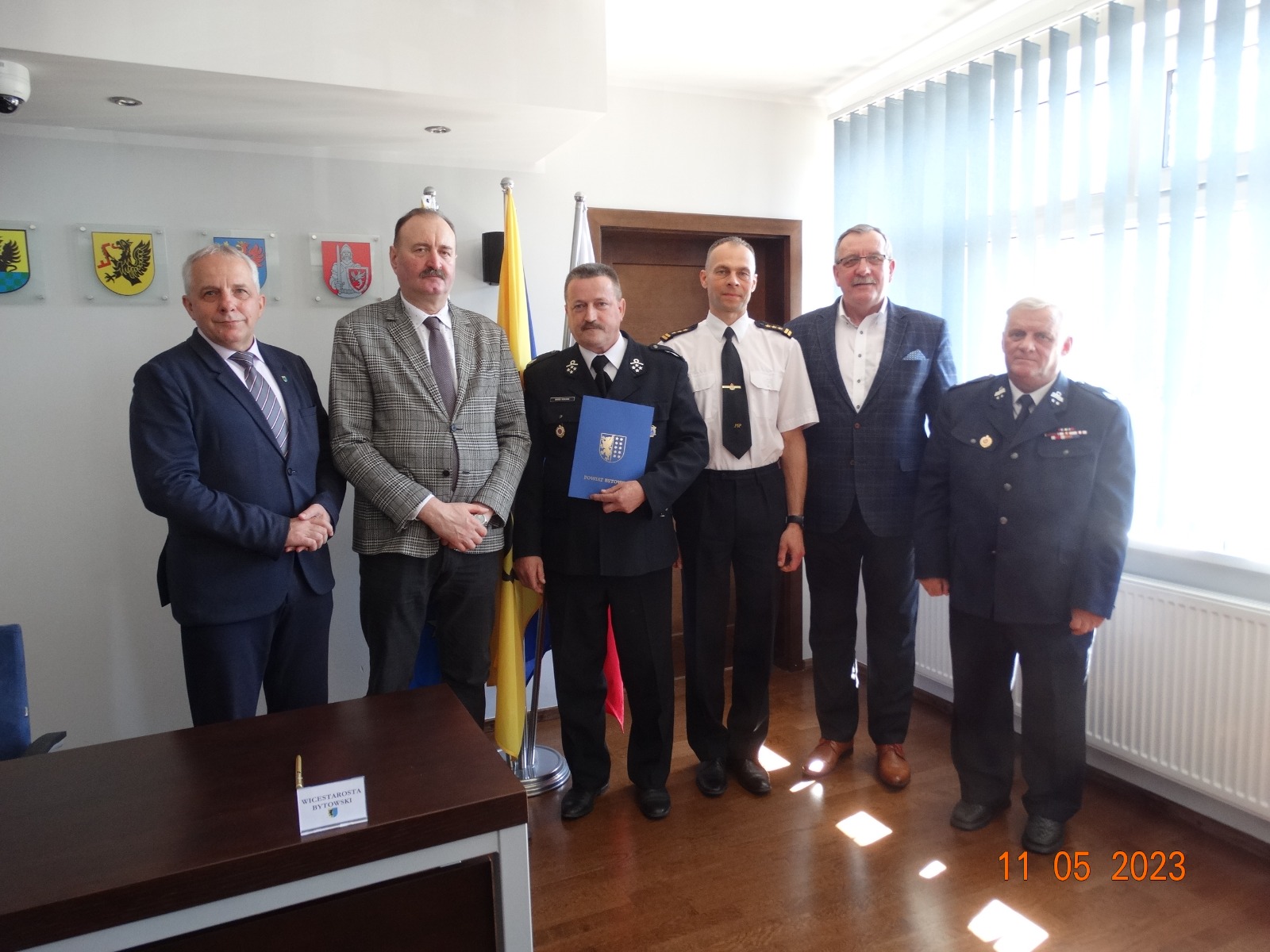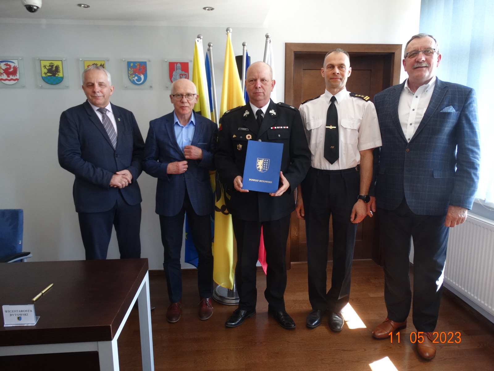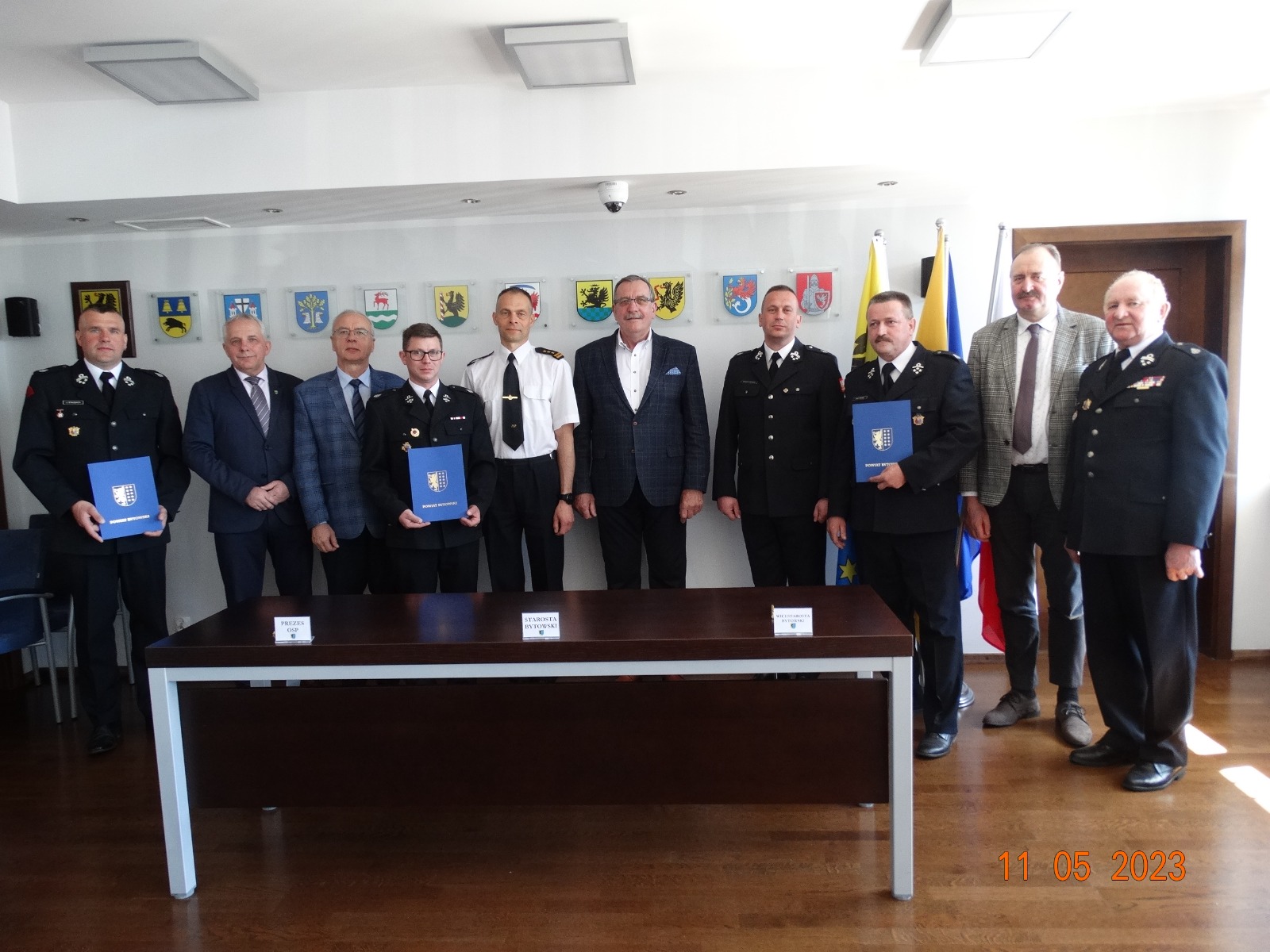 11 maja 2023 r. st. bryg. Dariusz Kaźmierczak Komendant Powiatowy PSP w Bytowie wziął udział w uroczystym podpisaniu umów dotyczących przekazania dotacji celowej dla Ochotniczych Straży Pożarnych w ramach „Programu modernizacji technicznych ochotniczych straży pożarnych w latach 2021-2025” w Starostwie Powiatowym w Bytowie.
