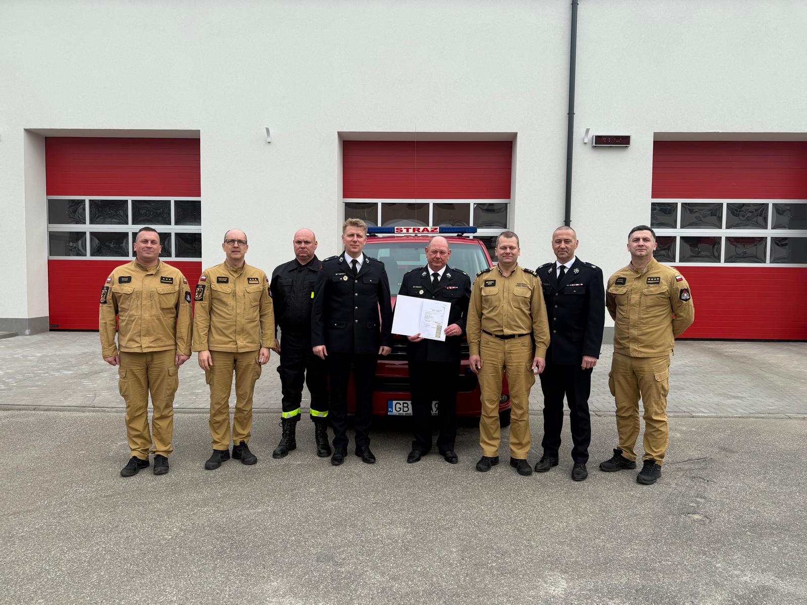 W dniu 24 marca 2026 r. w Komendzie Powiatowej Państwowej Straży Pożarnej w Bytowie odbyło się spotkanie, podczas którego został przekazany samochód specjalny lekki marki Volkswagen T5 Multivan dla jednostki Ochotniczej Straży Pożarnej w Studzienicach.