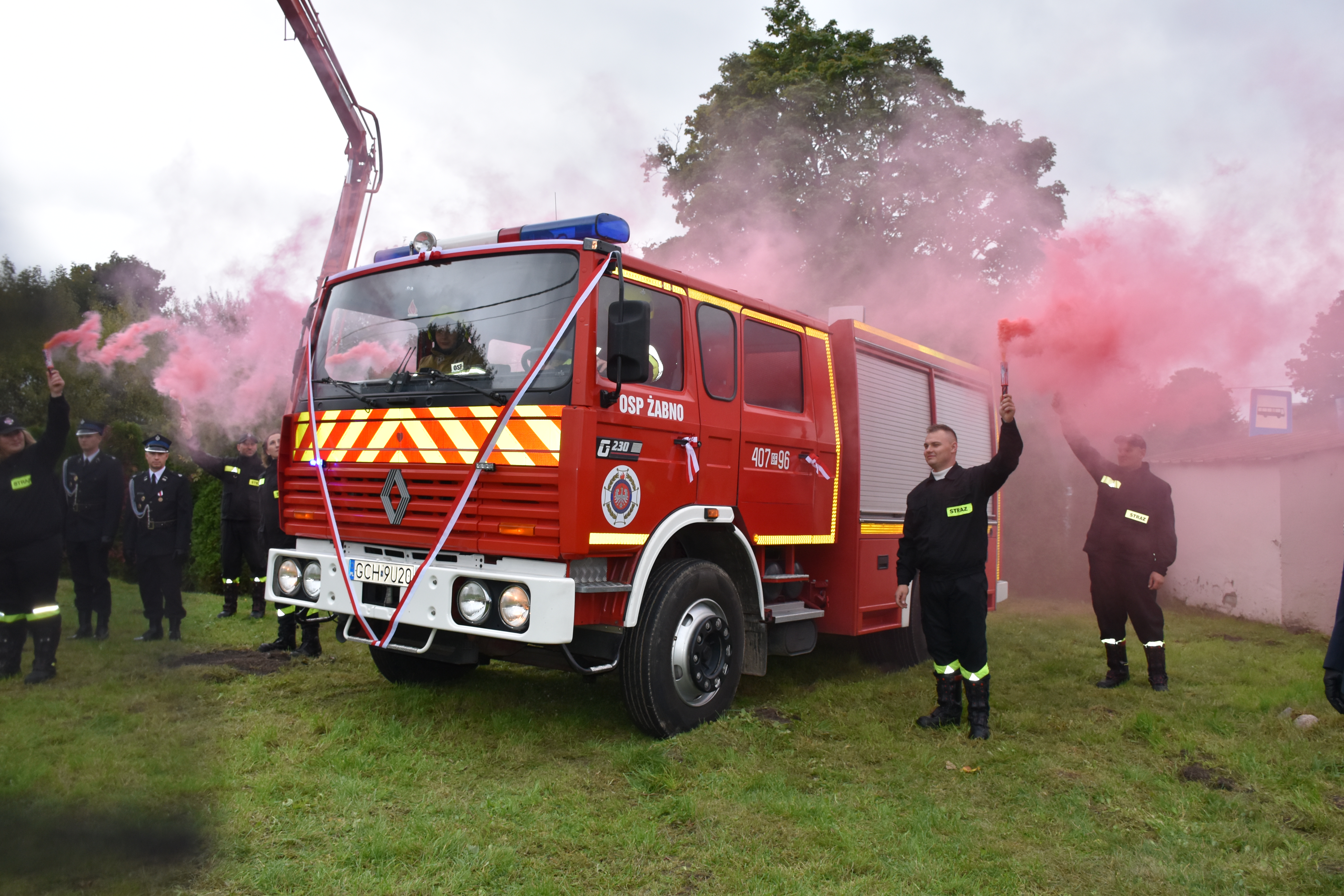 06 pażdziernika 2023 r. odbyła się uroczystość przekazania średniego samochodu gaśniczego marki RENAULT dla Ochotniczej Straży Pożarnej w Żabnie.