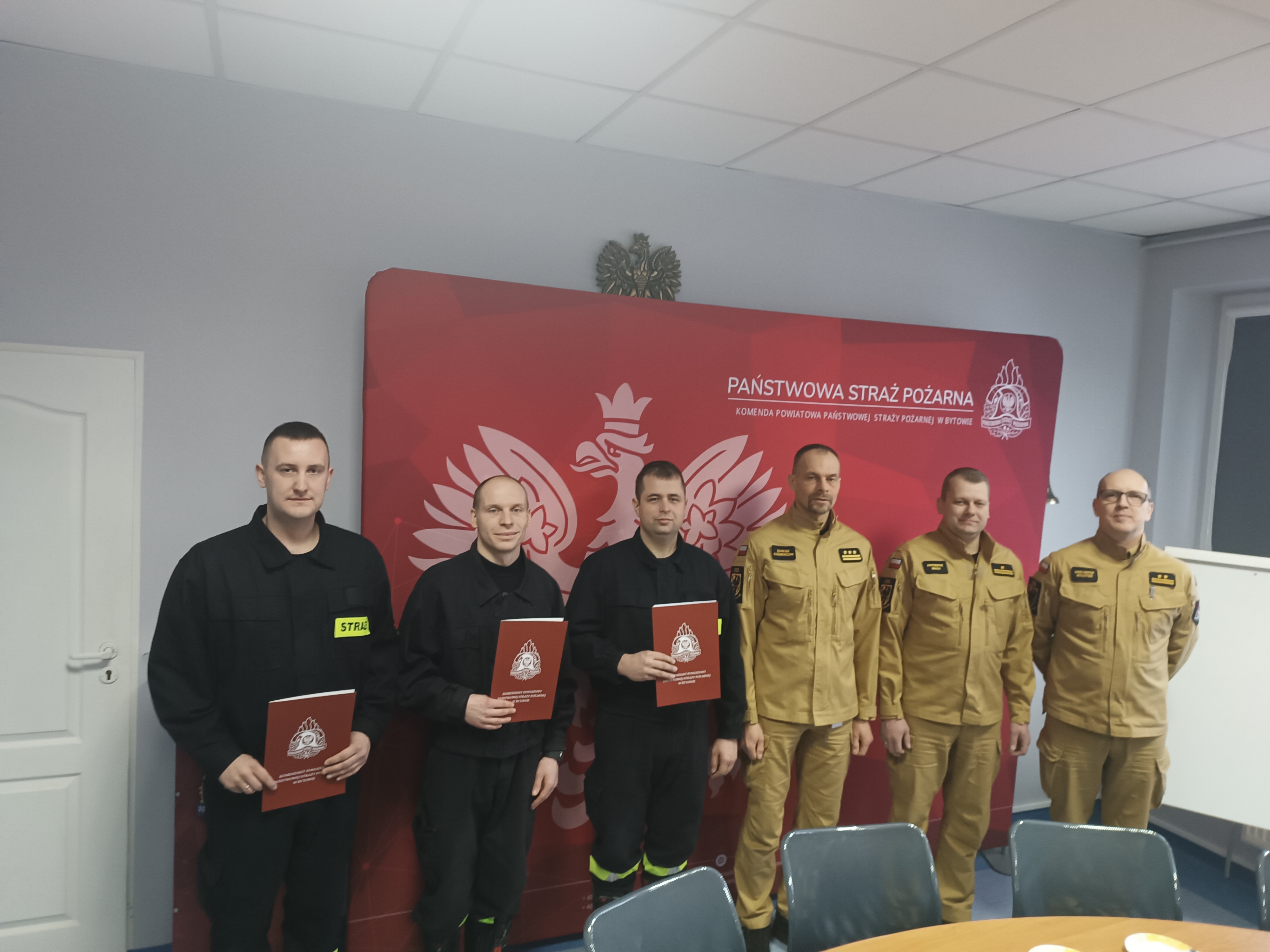 Dnia 11 stycznia 2024 r. w siedzibie Komendy Powiatowej PSP w Bytowie odbyła się uroczysta zbiórka, podczas której odbyło się ślubowanie trzech nowo przyjętych funkcjonariuszy Państwowej Straży Pożarnej str. Pawła Grzegorowskiego, str. Sylwestra Kręckiego oraz str. Łukasza Makowskiego.