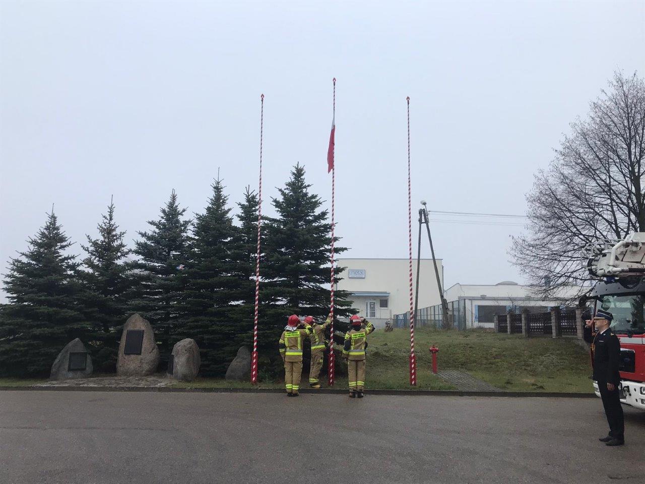 W jednostkach ratowniczo-gaśniczych w Bytowie i Miastku uroczyście podniesiono flagi państwowe na maszty.