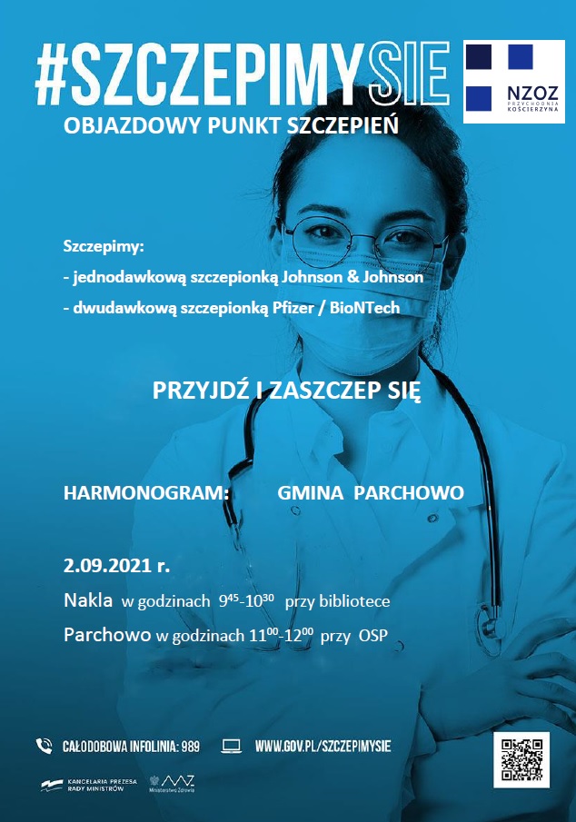 - 02 września 2021 r. w godzinach 11.00-12.00 przy remizie OSP w Parchowie,