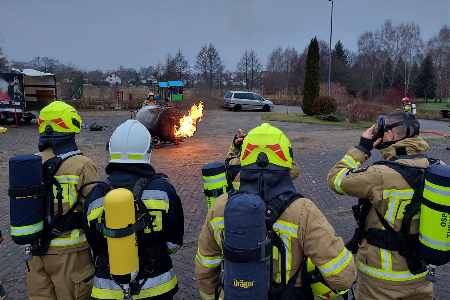 W dniu 18 grudnia 2021 roku w Tuchomiu spotkali się sympatycy pożarnictwa nie tylko z powiatu bytowskiego. Druhowie z Ochotniczej Straży Pożarnej w Tuchomiu, Kramarzynach, Nowych Polaszkach, Lipnicy oraz Komendy Powiatowej Państwowej Straży Pożarnej w Bytowie uczestniczyli w ćwiczeniach przeprowadzonych przez instruktora z OLC Fire, Dariusza Olcena przy współpracy z Adamem Skrzypkowskim. Strażacy dowiedzieli się w jaki sposób zapobiegać pożarom zbiorników z gazem nie tylko w teorii, ponieważ po części wykładowej na placu odbyła się bardzo rozbudowana część praktyczna. Druhowie ćwicząc w rotach poznali tajniki gaszenia pożarów związanych z gazem LPG na specjalnym trenażerze. Strażacy podkreślali w prowadzonych rozmowach, że warsztaty pozwolą im na pewne i skuteczne działania w przypadkach nieszczelności instalacji, pożarów i innych zagrożeń z coraz popularniejszymi instalacjami na gaz propan-butan.