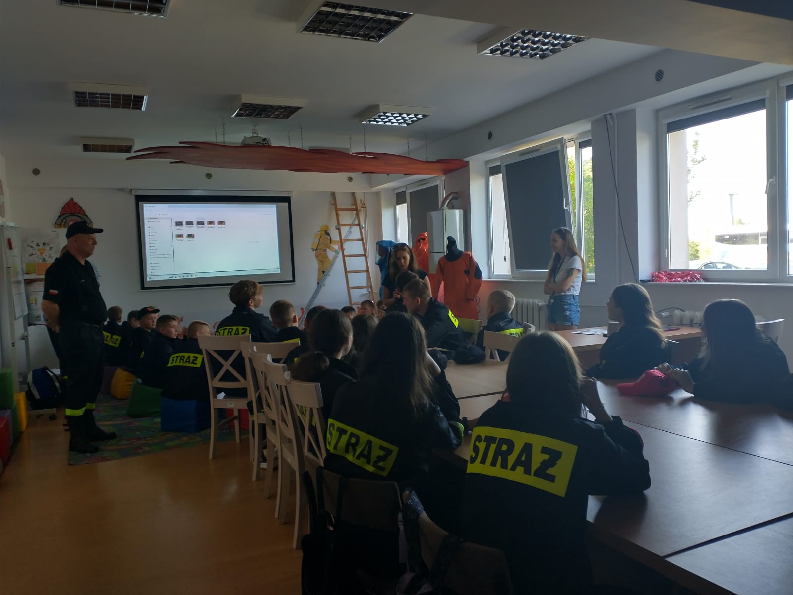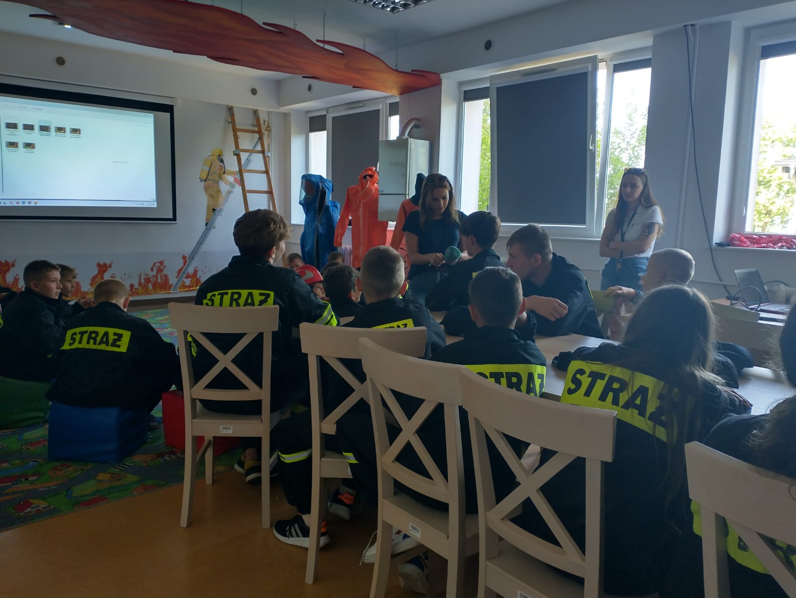 W ramach realizacji programu obozu, młodzi adepci sztuki pożarniczej wzięli udział w prowadzonych przez specjalnie przeszkolonych funkcjonariuszy Państwowej Straży Pożarnej zajęciach z zakresu ochrony przeciwpożarowej i szeroko rozumianego bezpieczeństwa, przede wszystkim w okresie wakacyjnym. Zajęcia odbyły się w naszej Sali edukacyjnej OGNIK. Następnie dzieci i młodzież miały okazję do zapoznania się z pracą strażaka oraz sprzętem będącym na wyposażeniu KP PSP w Bytowie.