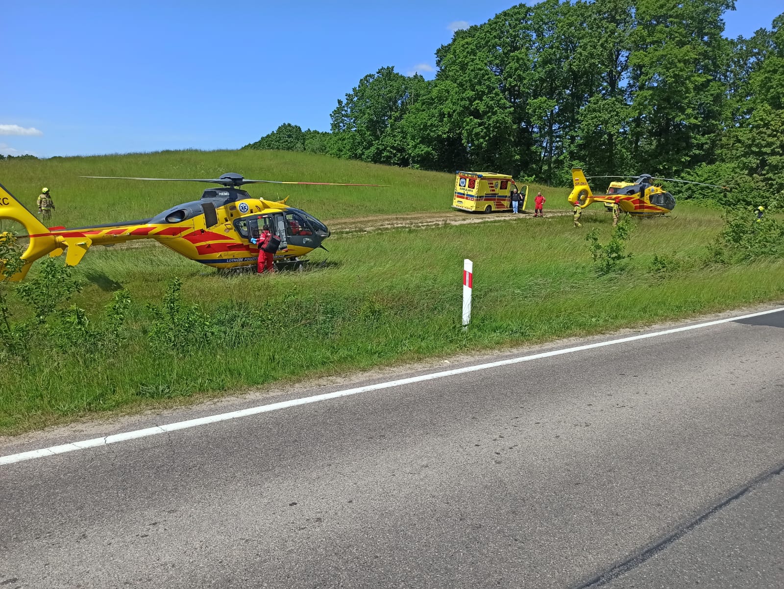 Ze względu na ilość i stan poszkodowanych, na miejsce zdarzenia zadysponowano, także dwa śmigłowce Lotniczego Pogotowia Ratunkowego.