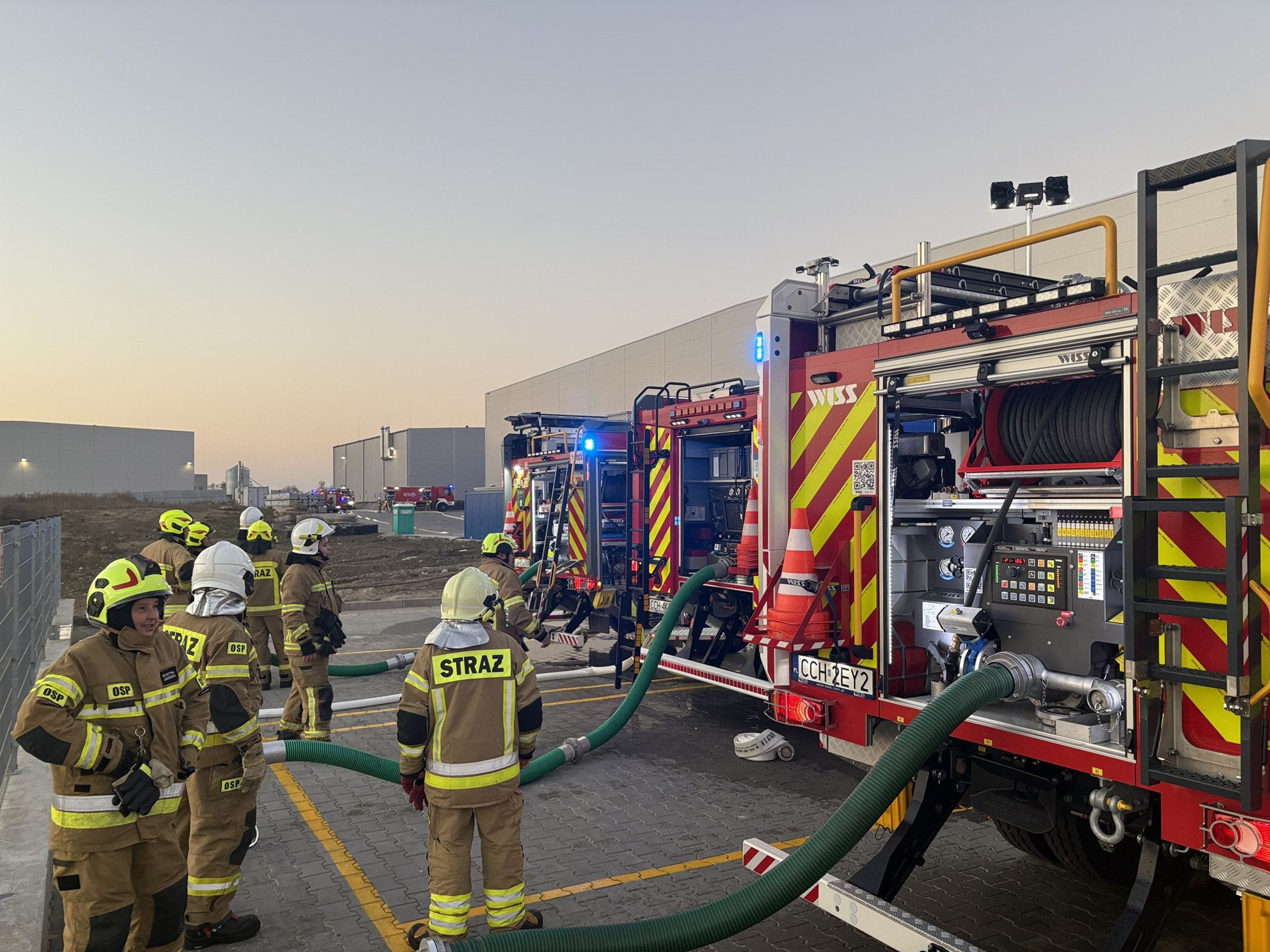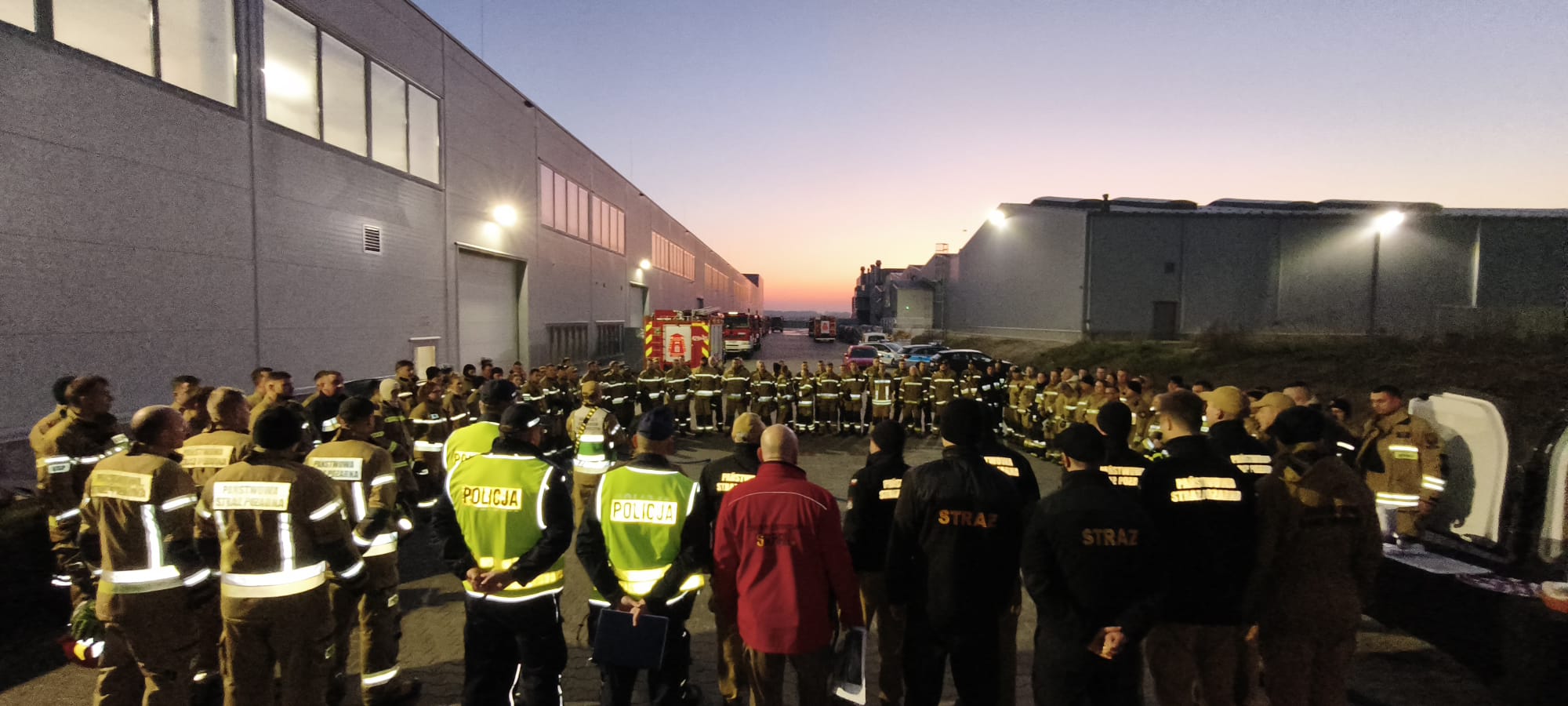 W piątek 7 listopada 2025 r. na terenie jednego z większych zakładów powiatu chełmińskiego, firmie Medos, zajmującego się produkcją parapetów, klamek i innych elementów stolarki okiennej i drzwiowej, odbyły się ćwiczenia zgrywające jednostek OSP funkcjonujących na terenie powiatu chełmińskiego.