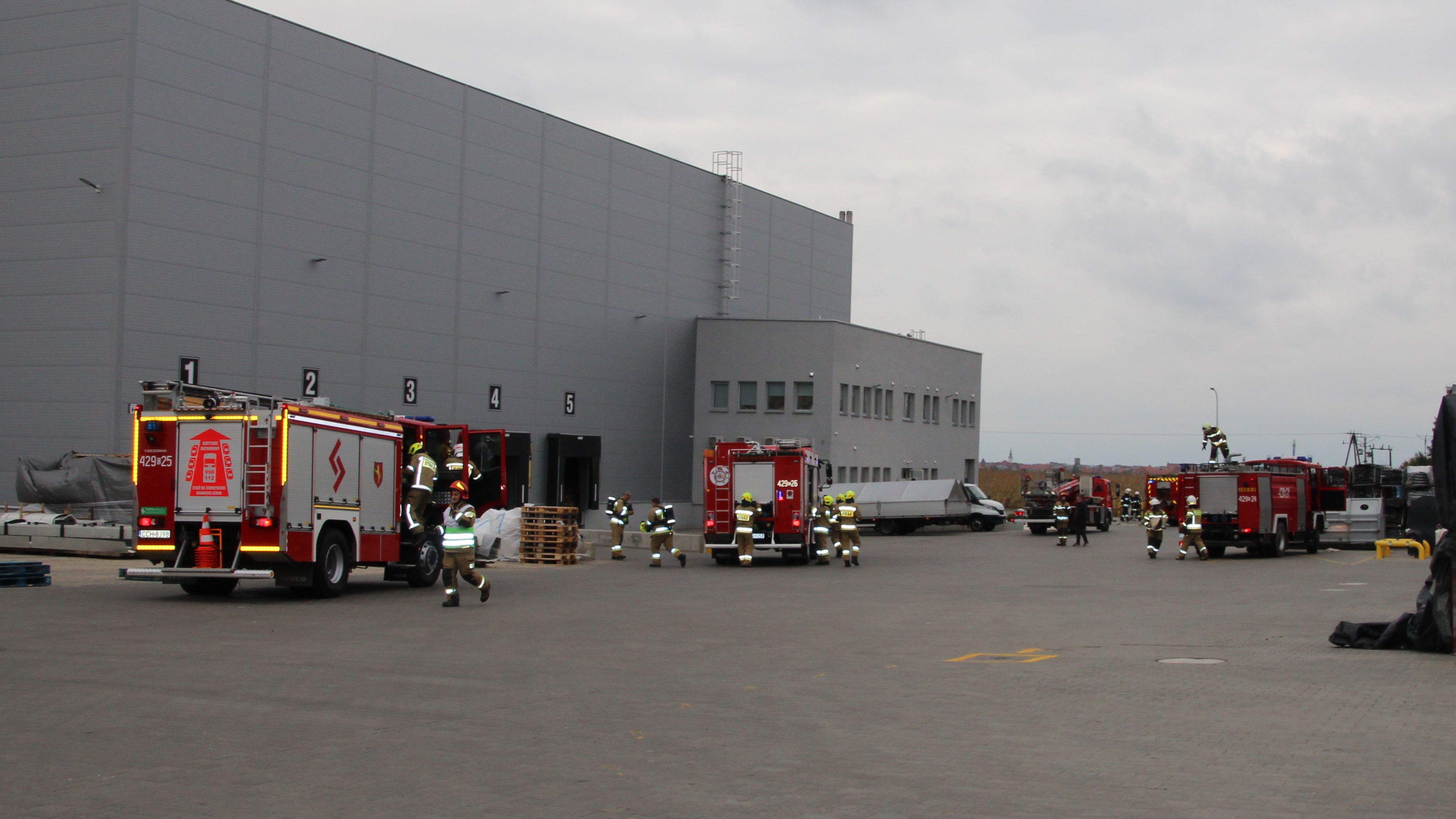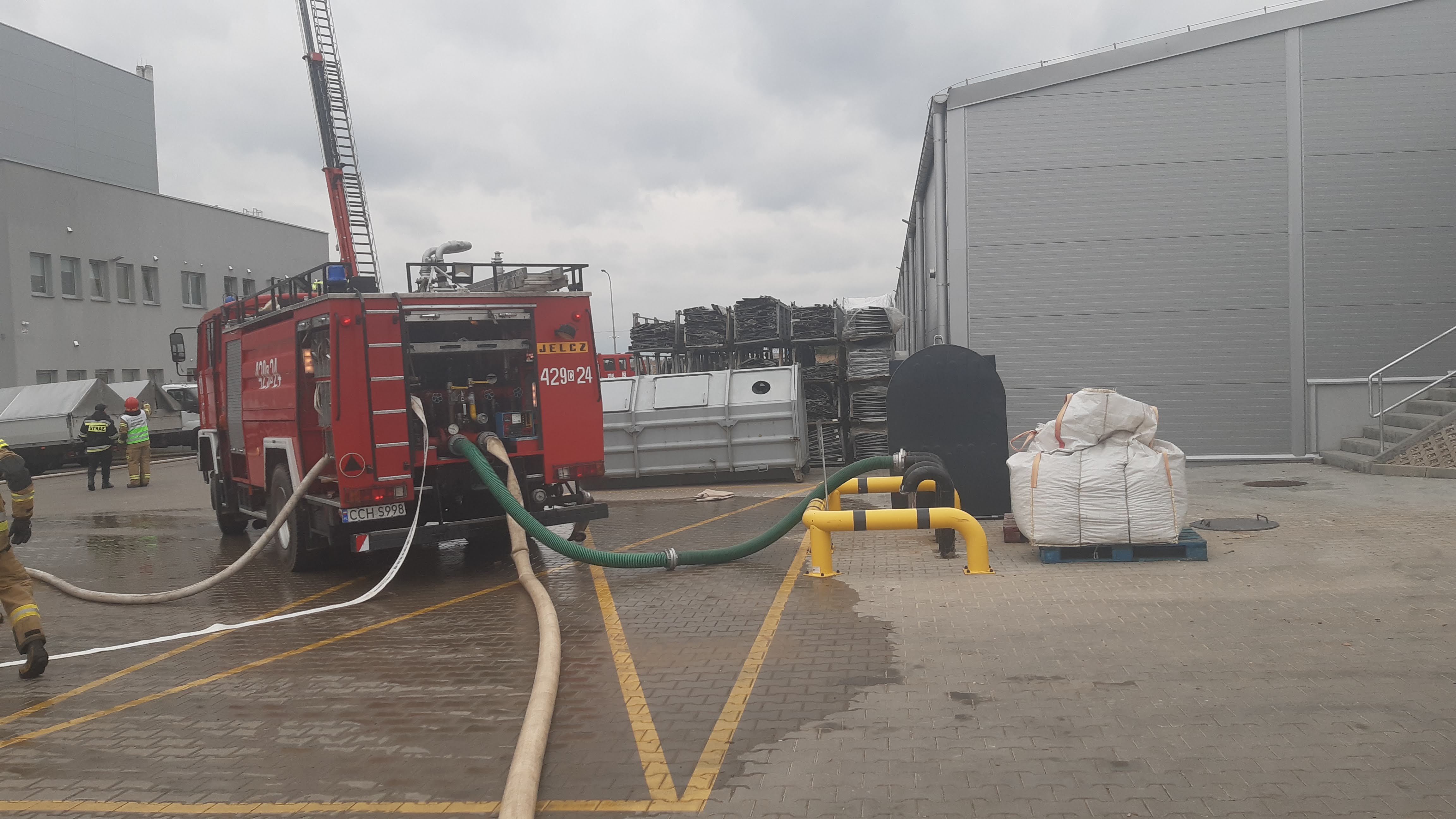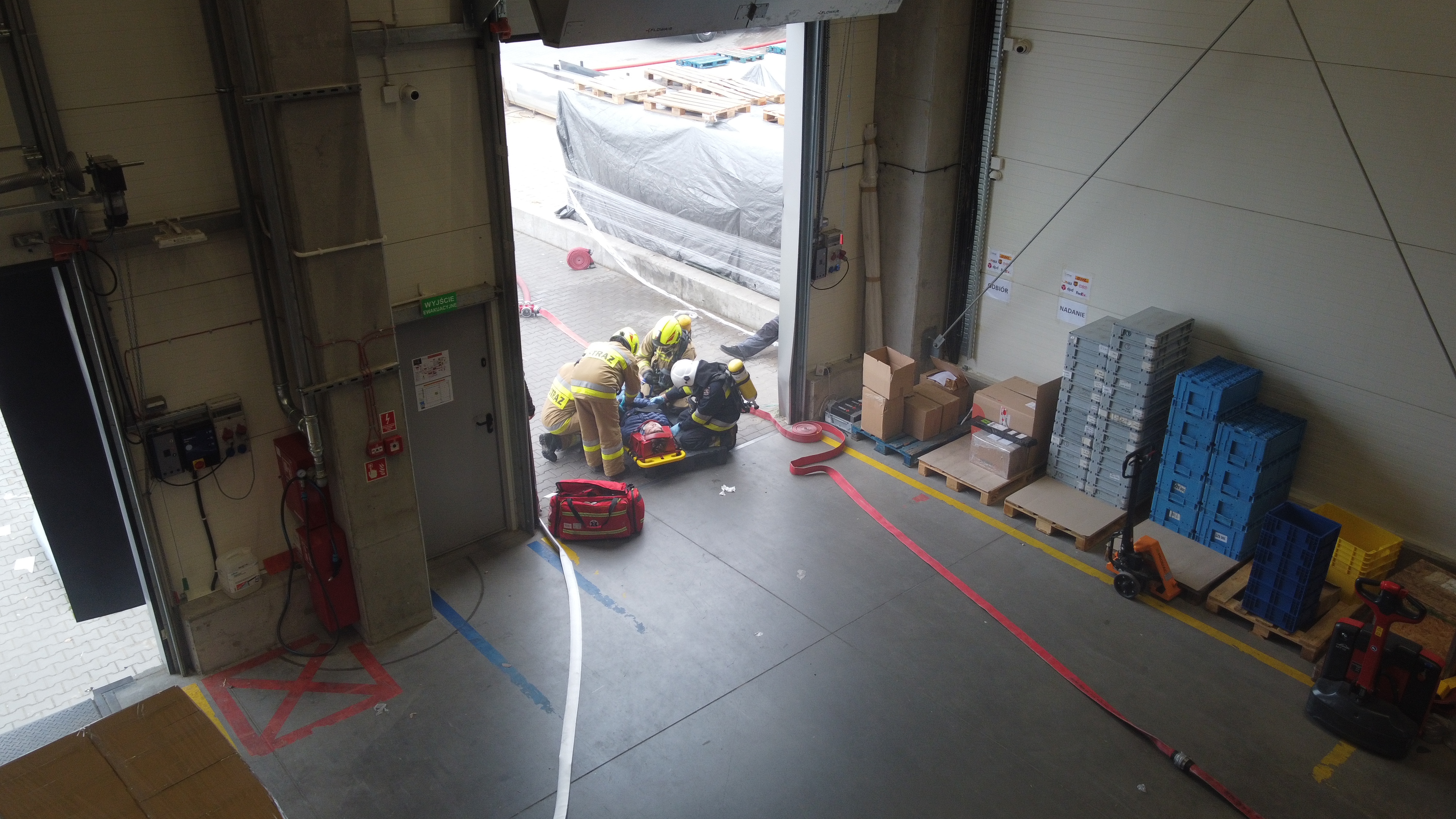 Scenariusz ćwiczeń zakładał pożar budynku magazynu wysokiego składowania zlokalizowanego w południowej części zakładu.