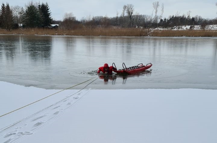 W dniach od 8 do 9 lutego 2023 r. nad Jeziorem Starogrodzkim strażacy z Komendy Powiatowej Państwowej Straży Pożarnej w Chełmnie ćwiczyli z zakresu ratownictwa lodowego.