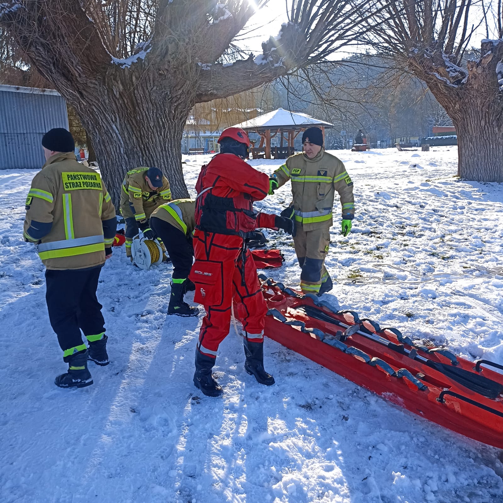 Celem ćwiczeń było przyswojenie zasad zachowania się na zamarzniętych akwenach, samoratowanie oraz udzielanie pomocy osobom poszkodowanym w wyniku załamania się pokrywy lodowej.