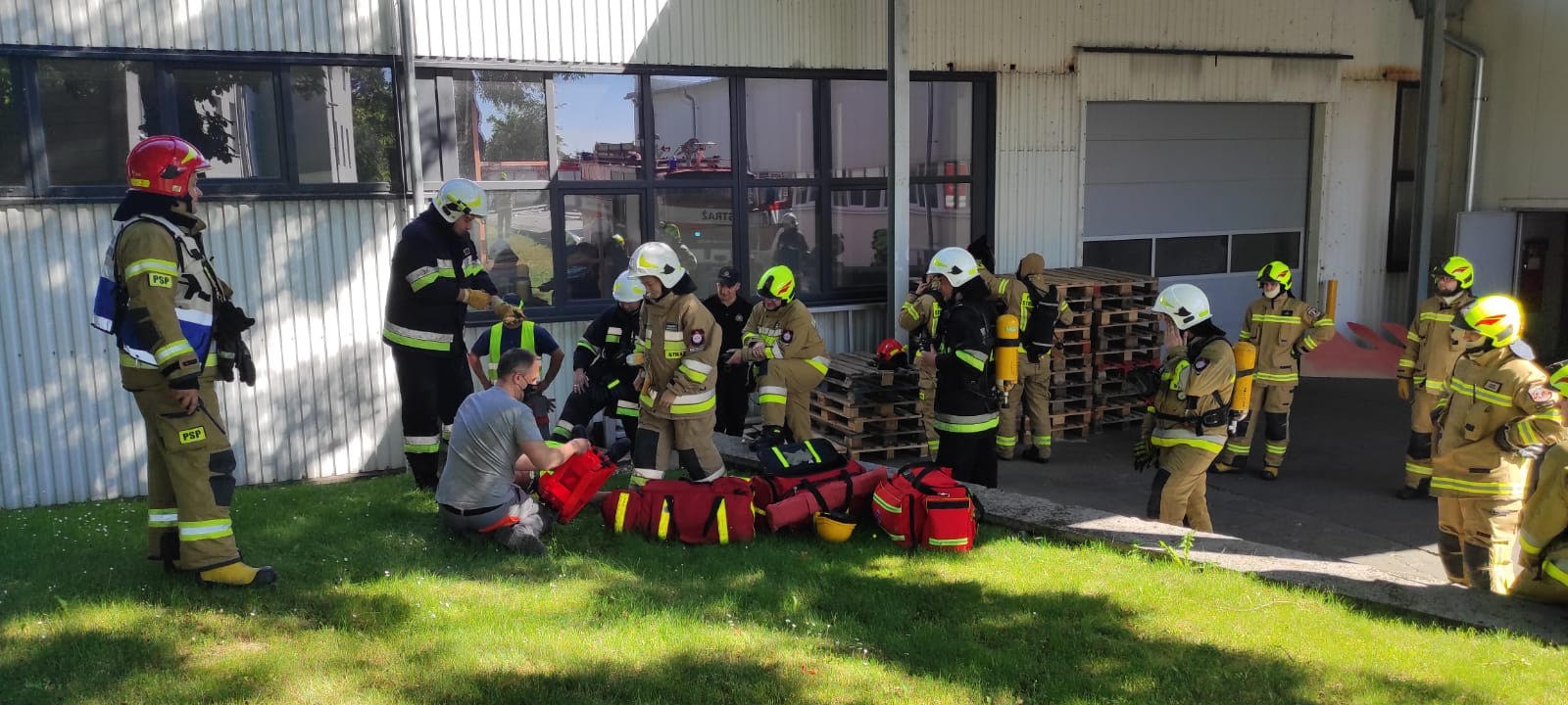 W dniu 16 czerwca br. JRG w Chełmnie zorganizowała ćwiczenia ratownicze w zakładzie produkcyjnym "Adriana" S.A. w Kosowiźnie. Scenariusz ćwiczeń zakładał zadymienie jednego z pomieszczeń magazynowych co doprowadziło do uruchomienia czujnika dymu oraz załączenia się alarmu I stopnia na zakładzie. Z chwilą zauważenia dymu w pomieszczeniu stolarni pracownicy uruchomili ręczny ostrzegacz przeciwpożarowy i podjęli próbę ugaszenia ognia. Ze względu na duże zadymienie byli zmuszeni się ewakuować. W międzyczasie zakład rozpoczął ewakuację a informacja o pożarze wpłynęła do Stanowiska Kierowania KP PSP w Chełmnie. Zadysponowane zostały zastępy z JRG Chełmno, ZSP Kosowizna, OSP Kijewo Królewskie i OSP Płutowo. Ewakuacja w całości została przeprowadzona przez pracowników. Po ustaleniu liczby ewakuowanych stwierdzono brak jednej osoby. Założeniem ćwiczeń była budowa zaopatrzenia wodnego, wprowadzenie ratowników do wnętrza budynku w celu ugaszenia źródła ognia i odnalezienia osoby zaginionej. Następnie po wykonaniu założonych zadań strażacy wraz z pracownikami zakładu zapoznali się z obiektem oraz wzięli udział w szkoleniu z zagrożeń podczas pożaru pianek polietylenowych i obsługi podręcznego sprzętu gaśniczego. Ćwiczenia nadzorował dowódca JRG w Chełmnie st.kpt. Artur Tokarczyk. Szkolenie przeprowadzili inspektorzy ochrony przeciwpożarowej Hieronim Saran oraz Sławomir Stefański.