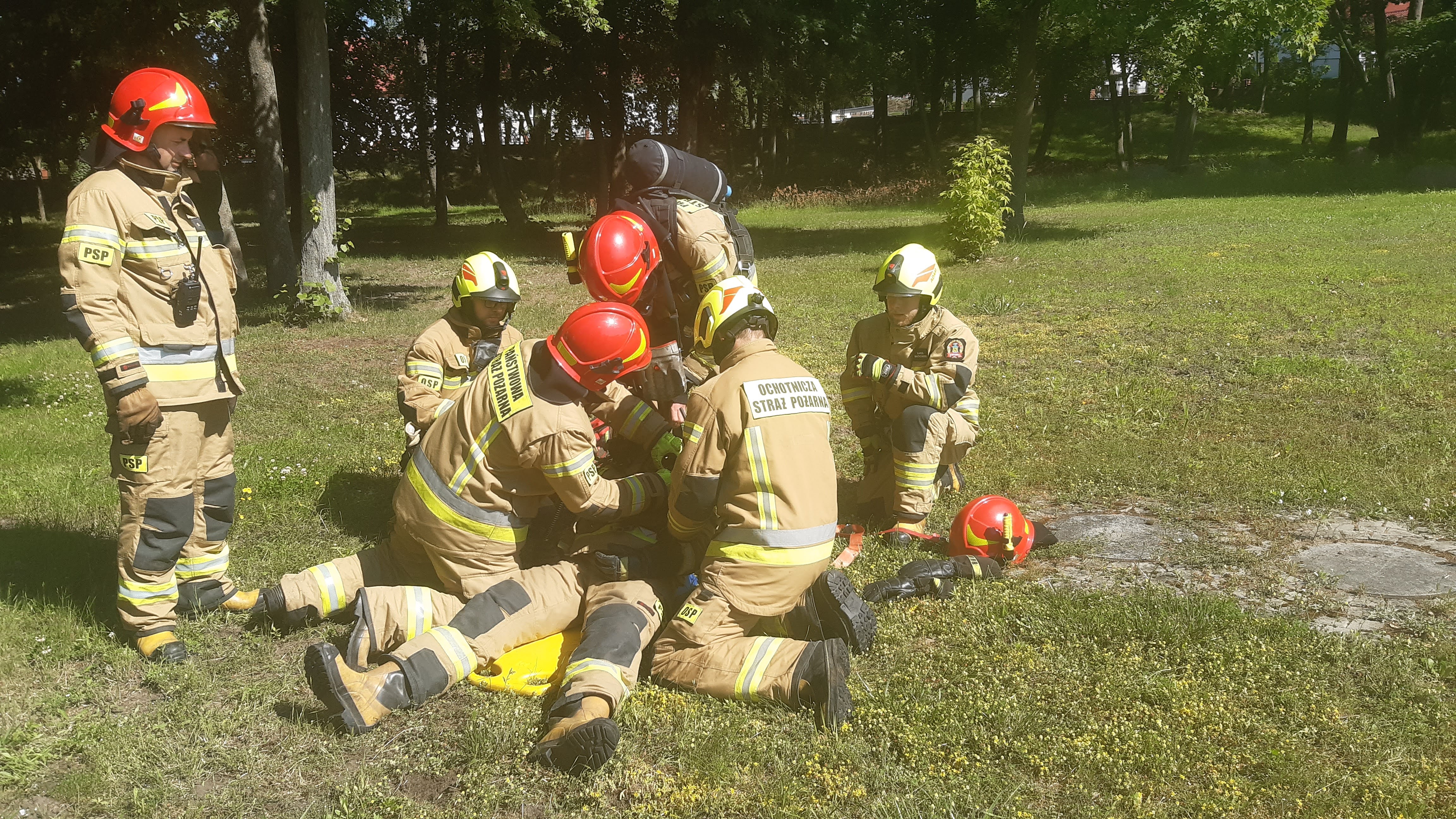 Po bezpiecznej ewakuacji poszkodowanego przy pomocy SHD21, ratowników zaskoczył kolejny epizod, jeden ze strażaków stracił przytomność i konieczne było udzielenie mu kwalifikowanej pierwszej pomocy, po udzieleniu skutecznej pomocy zakończono część praktyczną ćwiczeń.