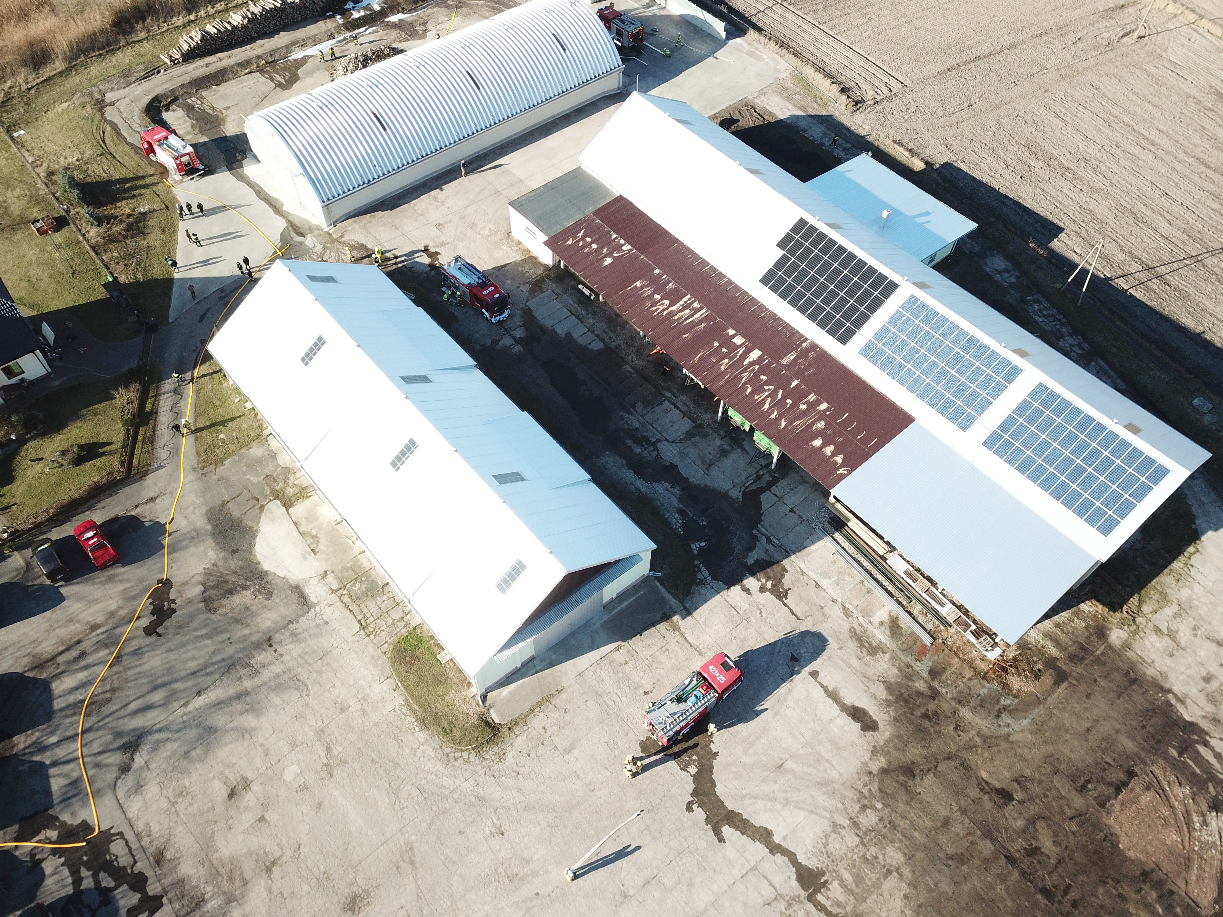 Założeniem podczas ćwiczeń był pożar magazynu zboża, działania polegały na podaniu pięciu prądów wody w natarciu na palący się budynek oraz 3 prądów w obronie zbiorników gazu oraz zbiornika z olejem napędowym.