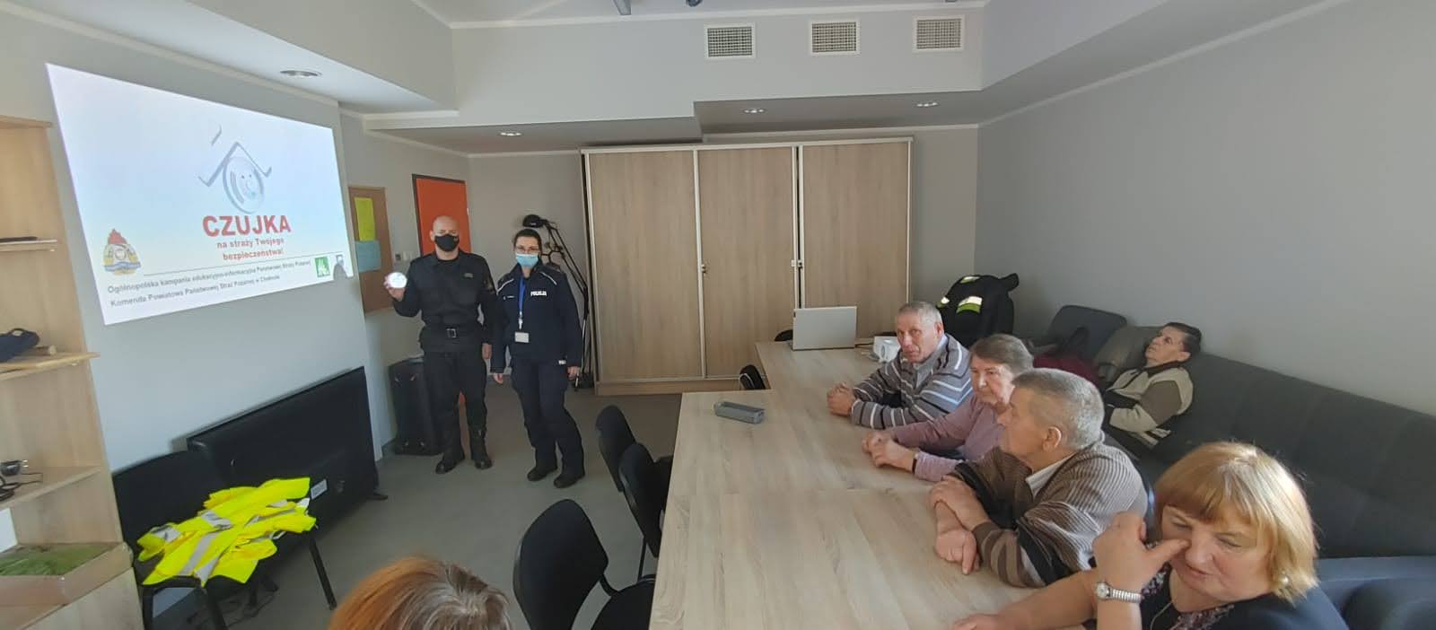 29 października 2021 r. mł. kpt. Kasper Korczak z Komendy Powiatowej Państwowej Straży Pożarnej w Chełmnie oraz mł. asp. Paulina Kufel z Komendy Powiatowej Policji w Chełmnie przeprowadzili pogadankę w Klubie Seniora w Kijewie Królewskim.