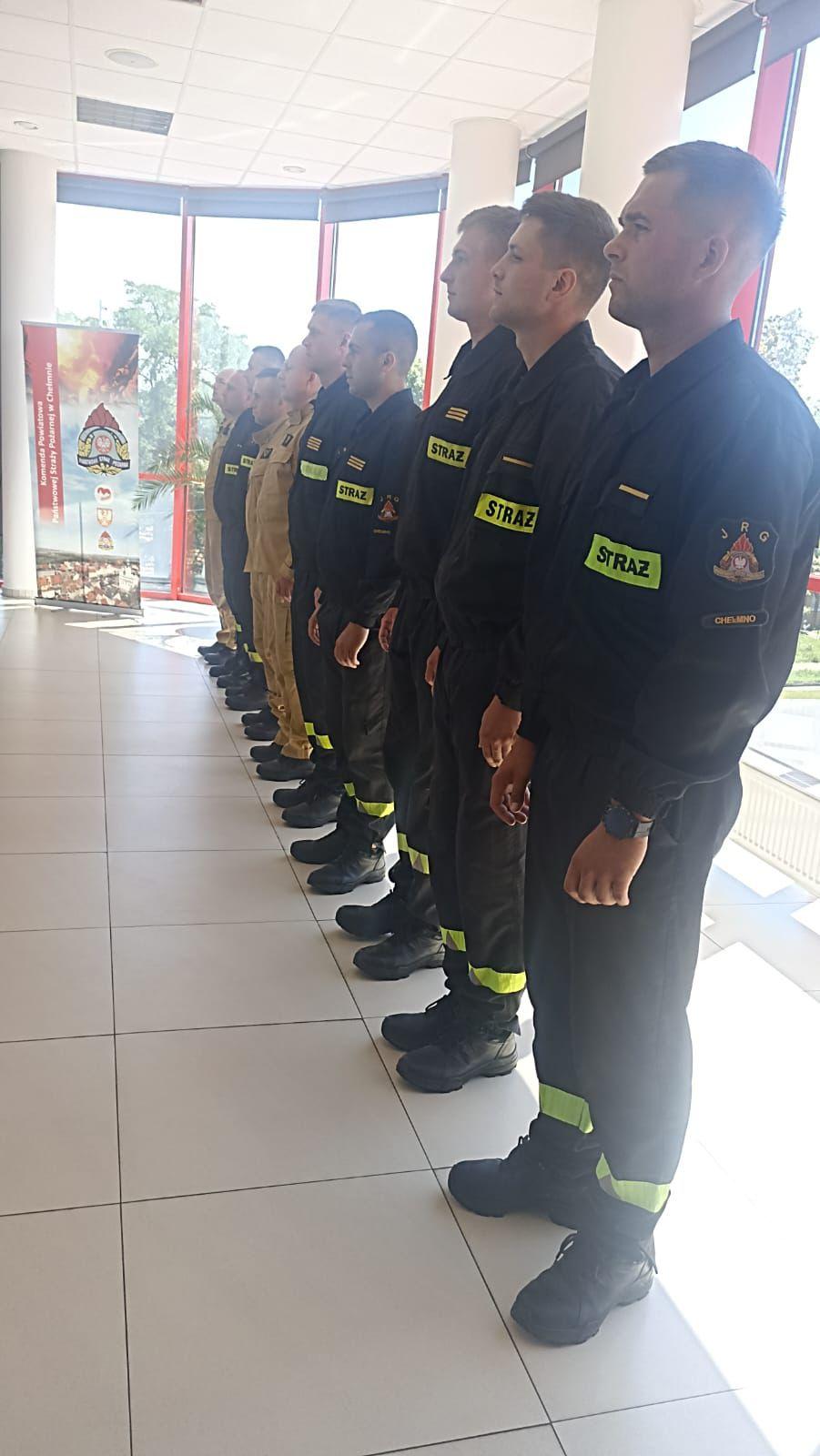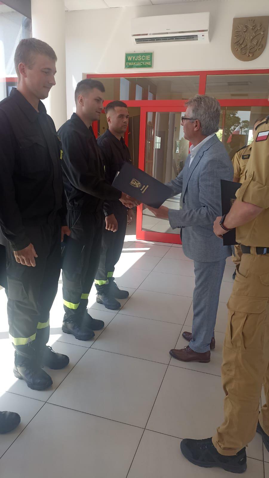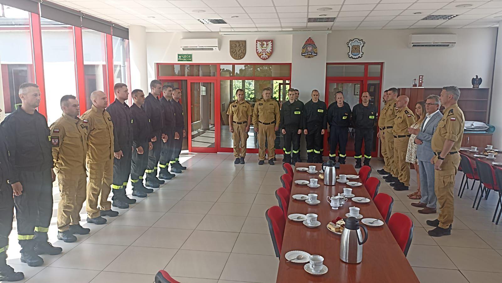 W dniu dzisiejszym Starosta Powiatowy Zdzisław Gamański w obecności Komendanta Powiatowego mł. bryg. Tomasza Guzek przyznał i wręczył nagrody finansowe dla funkcjonariuszy Komendy Powiatowej Państwowej Straży Pożarnej w Chełmnie, którzy wykazali się dużym zaangażowaniem podczas działań 28 czerwca 2024 r.