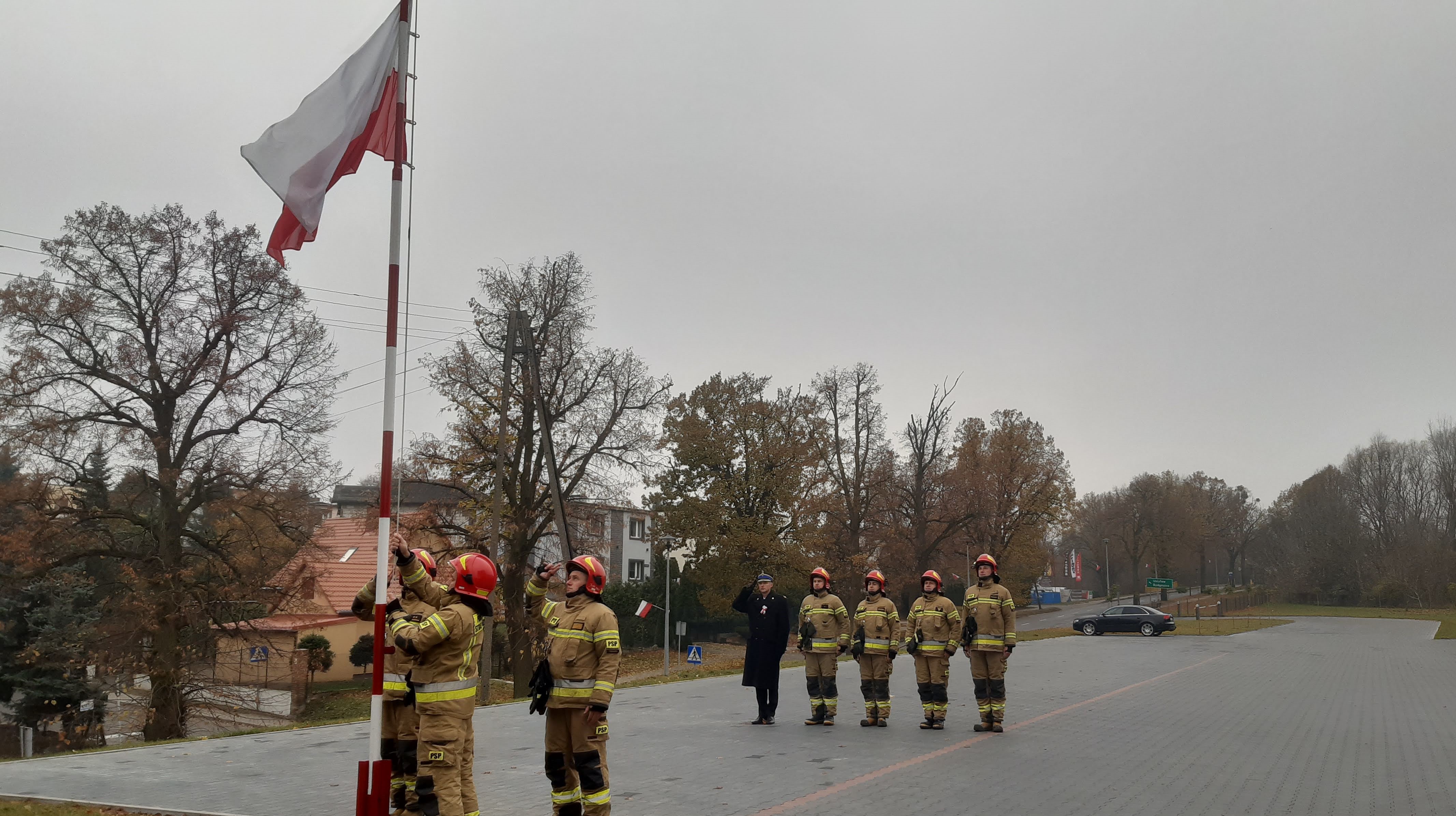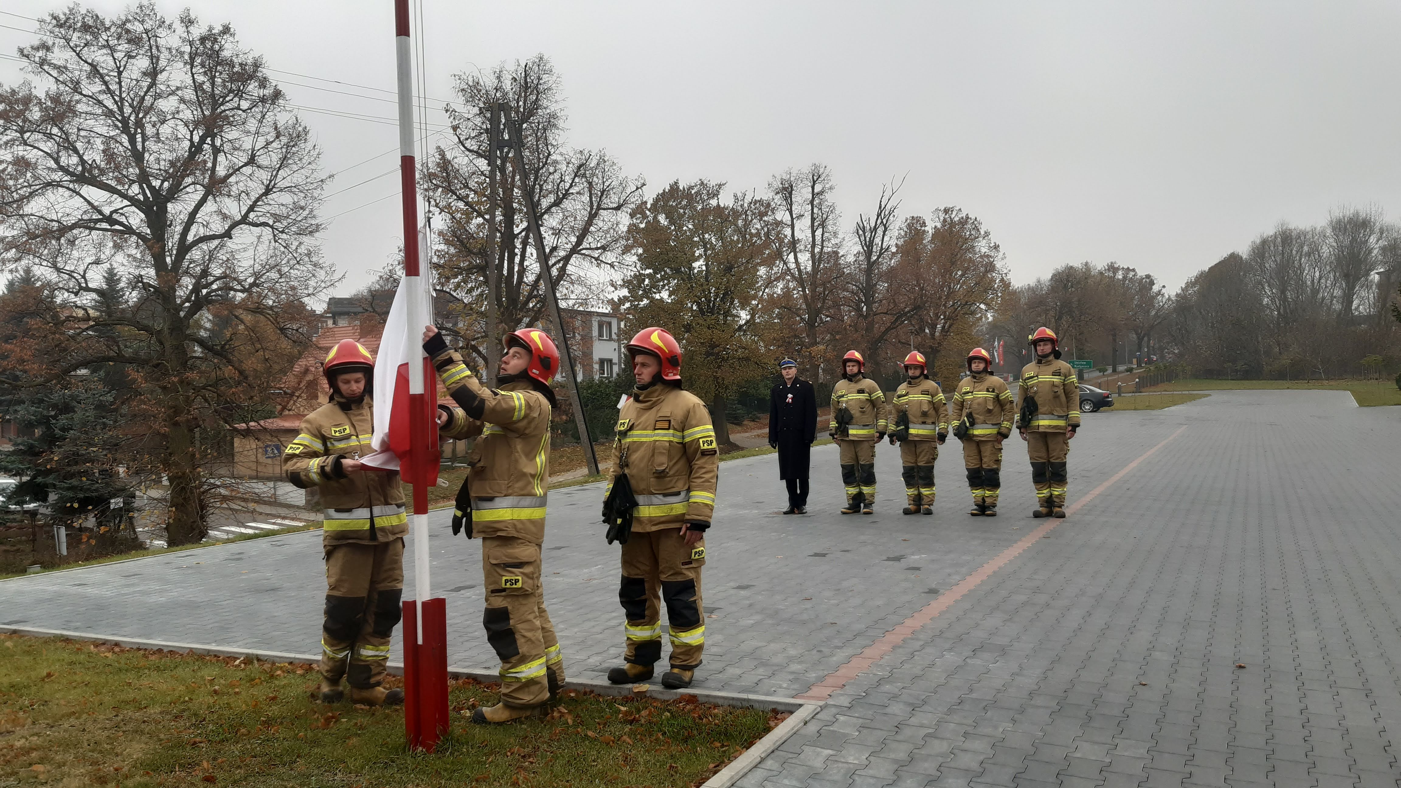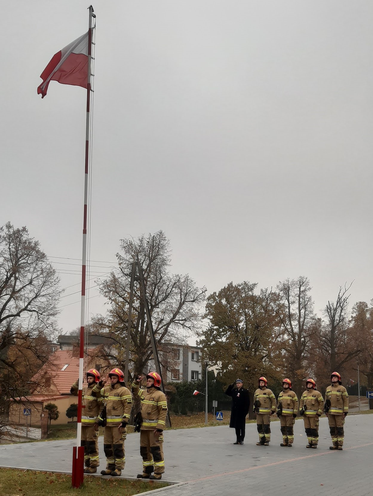 Po złożeniu meldunku Komendantowi Powiatowemu PSP w Chełmnie mł. bryg. Tomaszowi Guzek, odtworzono hymn państwowy oraz dokonano uroczystego podniesienia flagi państwowej.