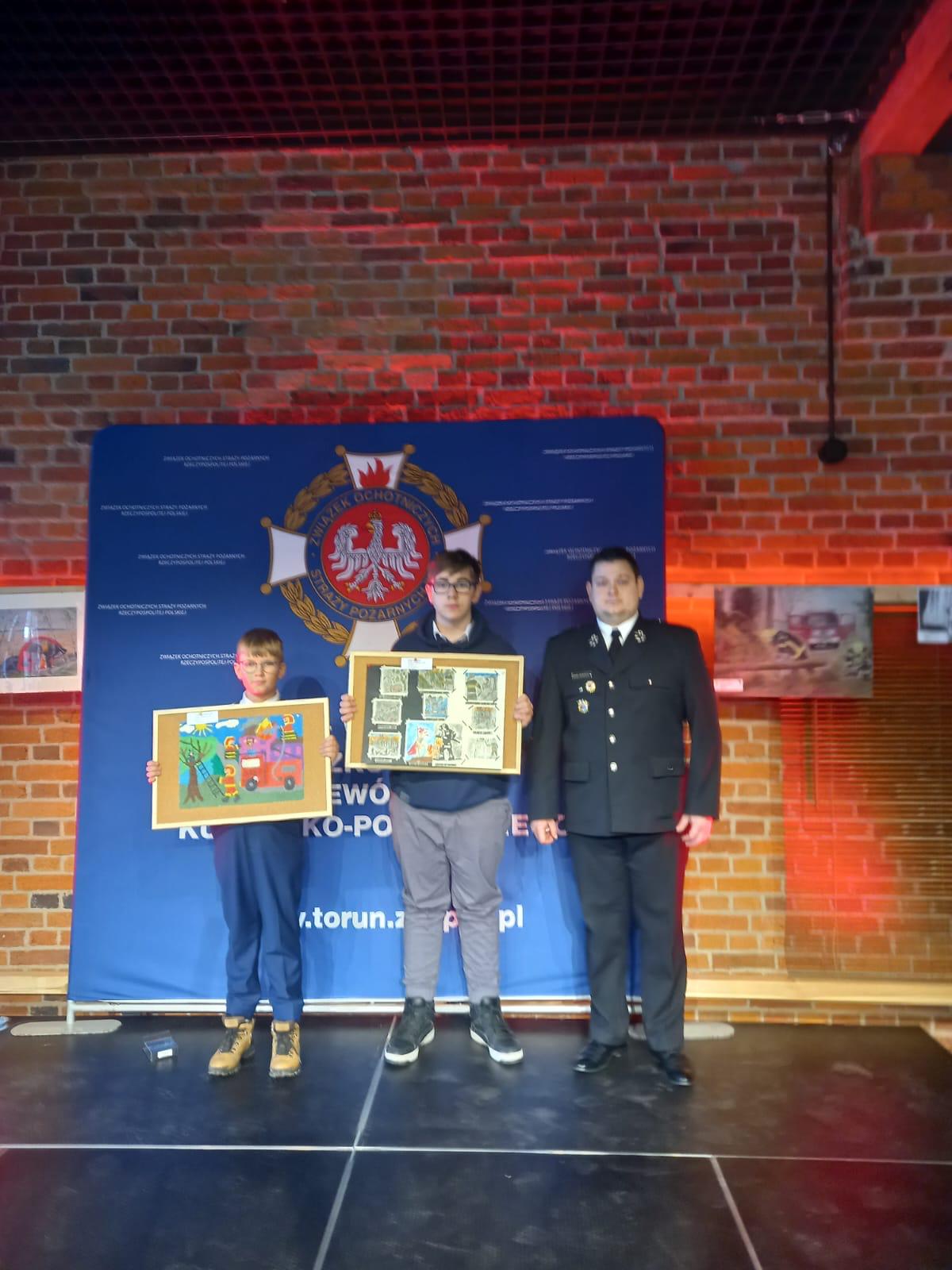 Laureaci konkursu otrzymali dyplony oraz nagrody rzeczowe, ktore wręczyli Zastępca Kujawsko-Pomorskiego Komendanta Wojewódzkiego PSP - st. bryg. Marek Rusoń oraz Prezes Oddziału Wojewódzkiego ZOSP RP - druh Jarosław Herbowski.