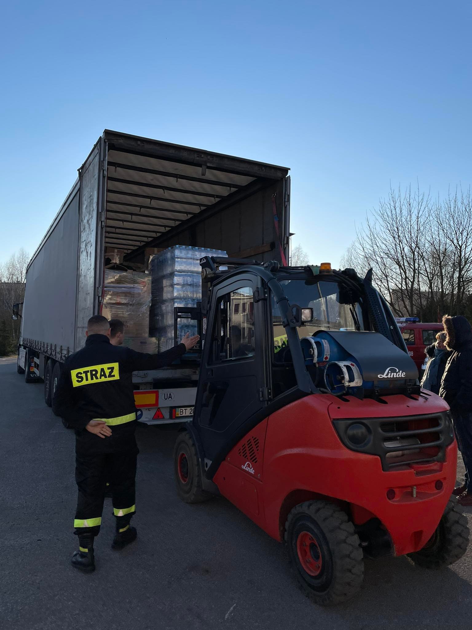 Strażacy Państwowej Straży Pożarnej i Ochotniczych Straży Pożarnych na terenach przygranicznych jak i w całej Polsce niosą pomoc uchodźcom, którzy przekraczają granicę naszego kraju. Do działań zadysponowano również kadetów oraz podchorążych ze szkół pożarniczych.
