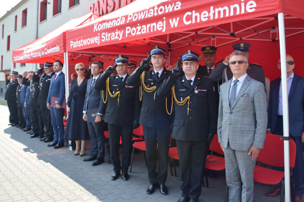 Uroczystość rozpoczęło wystąpienie Komendanta Powiatowego PSP w Chełmnie – mł. bryg. Tomasza Guzka, kolejnym etapem było wręczenie przyznanych odznaczeń, medali i awansów.