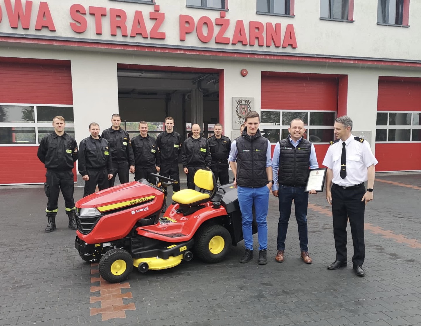 Komendant Powiatowy PSP w Chełmnie mł.bryg. Tomasz Guzek podziękował Prezesowi firmy Panu Łukaszowi Madejowi za przedstawienie bardzo dobrej oferty cenowej, podkreślając świetną współpracę z firmą, która na lokalnym rynku angażuje się w wiele przedsięwzięć, wspomaga inicjatywy lokalnej społeczności, w tym służb ratowniczych. Ten długo oczekiwany przez chełmińskich strażaków zakup pozwoli na sprawne i komfortowe utrzymanie terenów zielonych komendy, których powierzchnia łączna wynosi 8,5 tyś metrów kwadratowych. Maszyna John Deere X350, która przez dostawcę została oklejona na kolor czerwony jest dodatkowo doposażona w pług oraz łańcuchy na koła, co pozwoli na wykorzystywanie jej również w okresie zimowym.