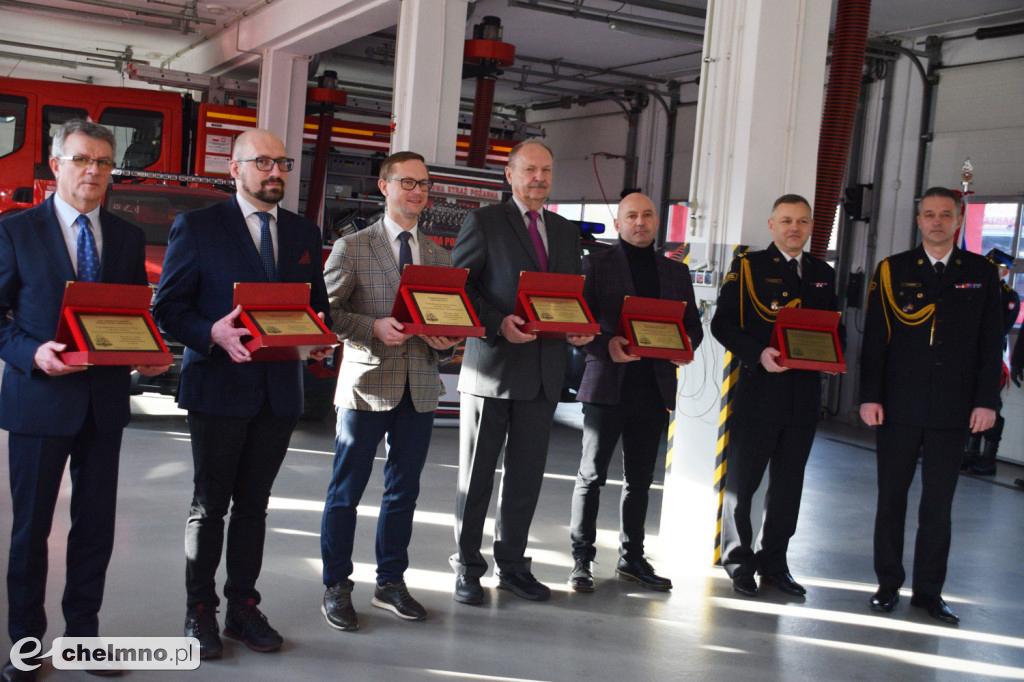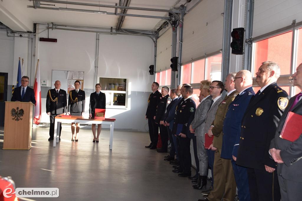 Uroczysta zbiórka z okazji oficjalnego przekazania dwóch pojazdów dla Komendy Powiatowej PSP w Chełmnie, otwarcia serwerowni i stanowiska kierowania po modernizacji oraz przekazania pojazdu dla OSP Chełmno