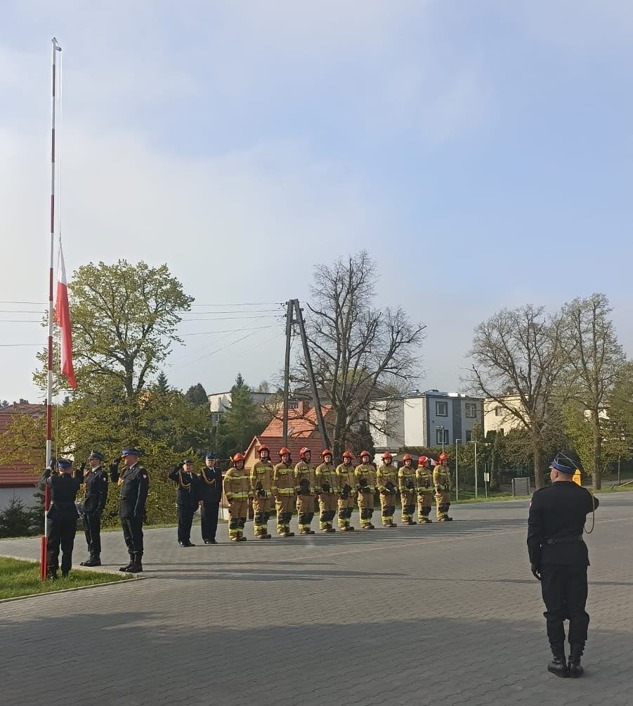 Z okazji Dnia Flagi Rzeczypospolitej Polskiej w Komendzie Powiatowej PSP w Chełmnie odbyło się uroczyste podniesienie flagi państwowej na maszt.