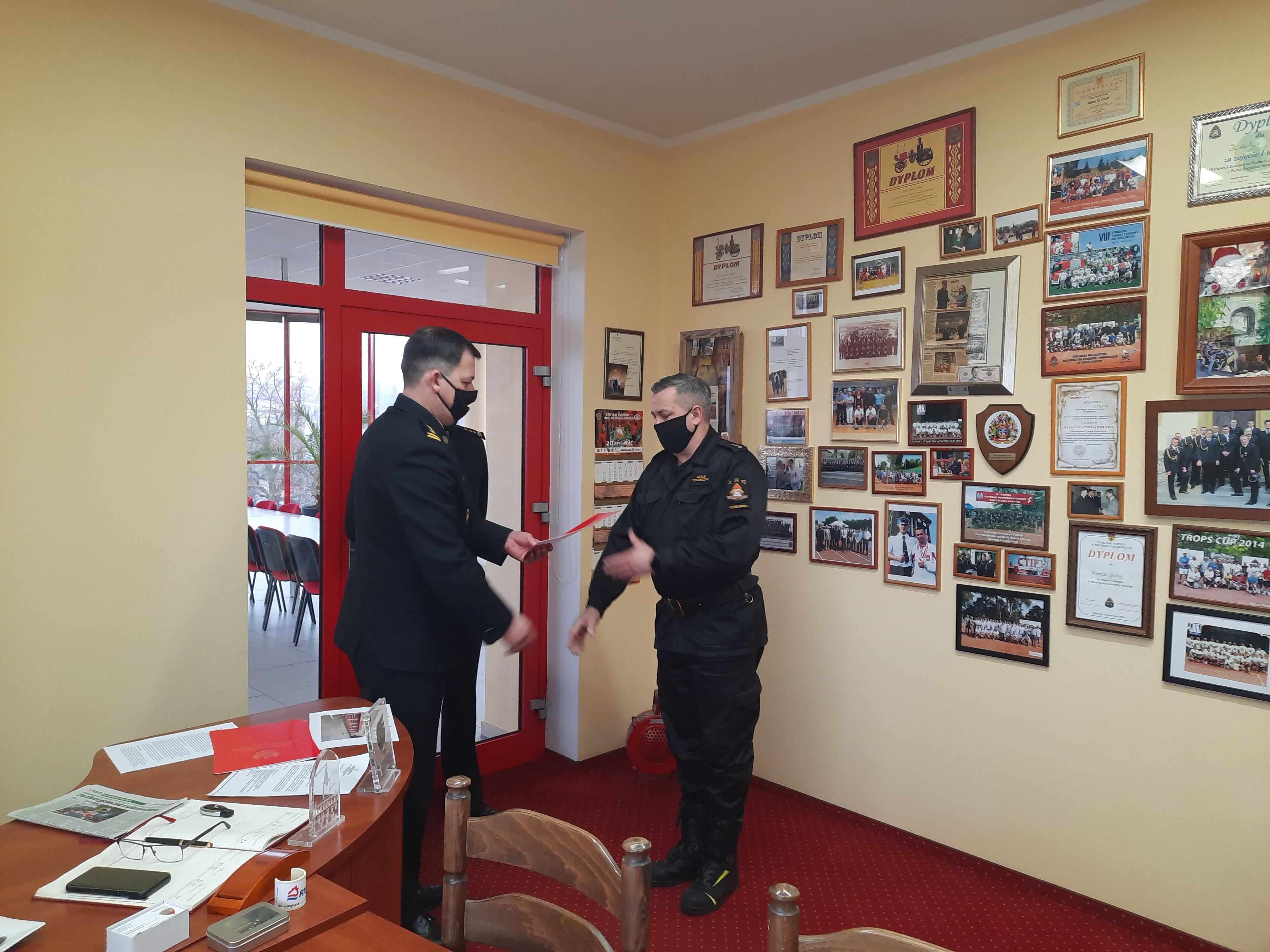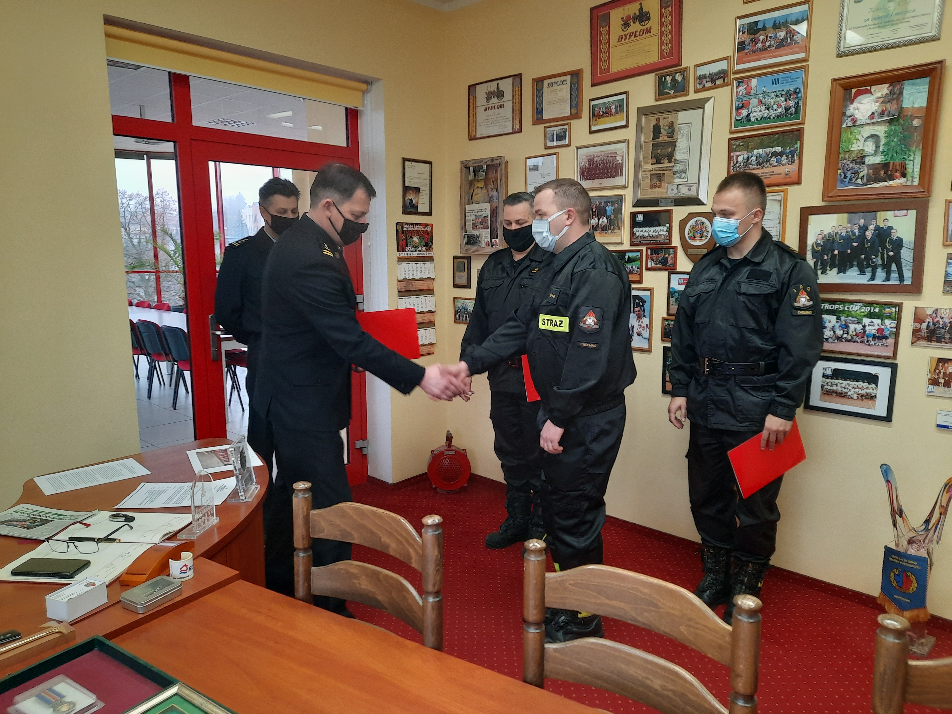 W dniu 01 marca 2021 r. Komendanta Powiatowy Państwowej Straży Pożarnej w Chełmnie - st. bryg. mgr inż. Karol Utrata wręczył akty mianowania na wyższe stanowiska służbowe. Pan kpt. inż. Artur Tokarczyk został mianowany na stanowisko dowódcy jednostki ratowniczo-gaśniczej, pan mł. kpt. inż. Gracjan Pilarski - na stanowisko zastępcy dowódcy jednostki ratowniczo-gaśniczej oraz pan asp. sztab. Marcin Kozłowski - na stanowisko dowódcy zmiany. Gratulujemy awansowanym i życzymy wszelkiej pomyślności w wykonywaniu obowiązków służbowych.