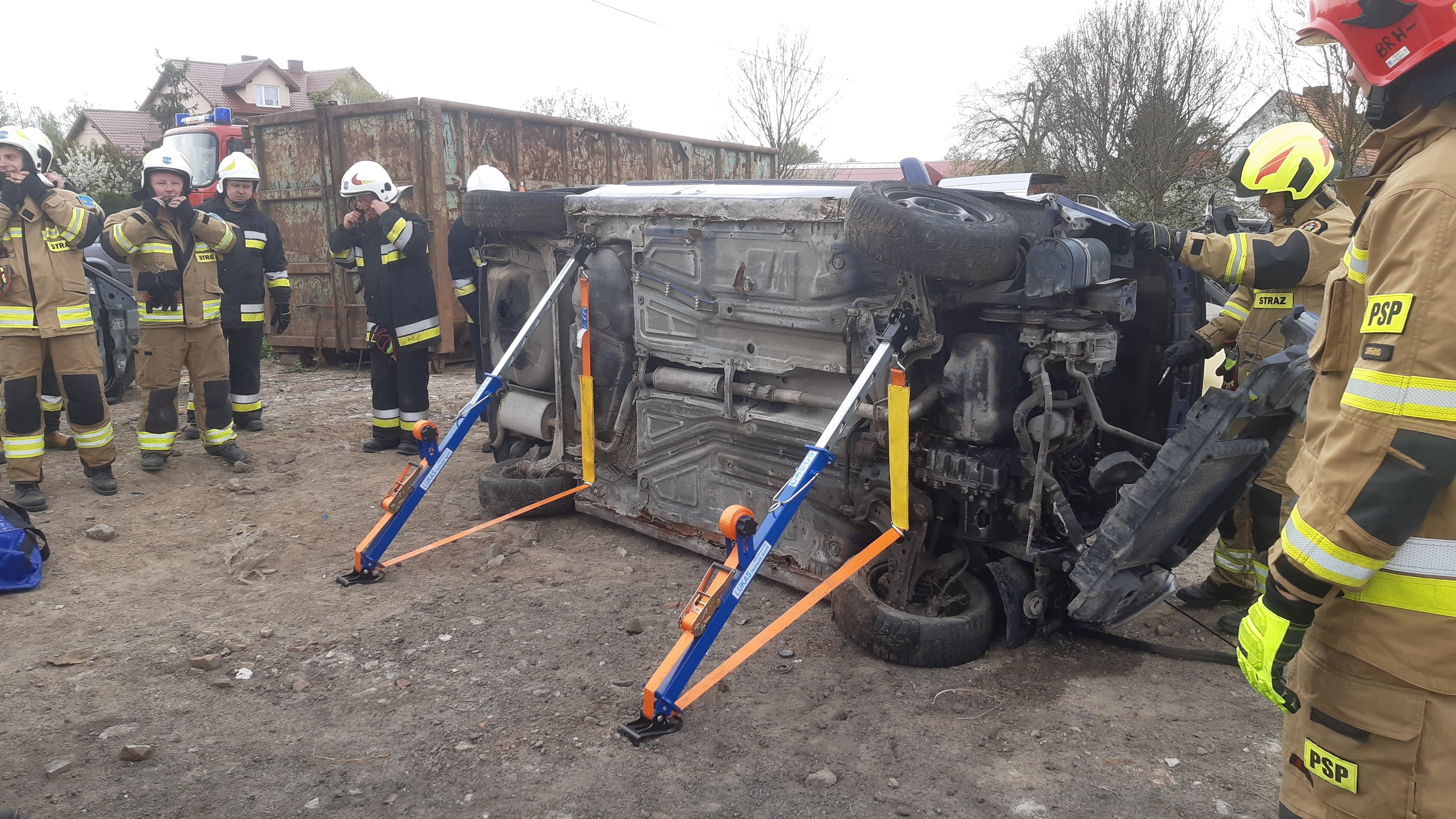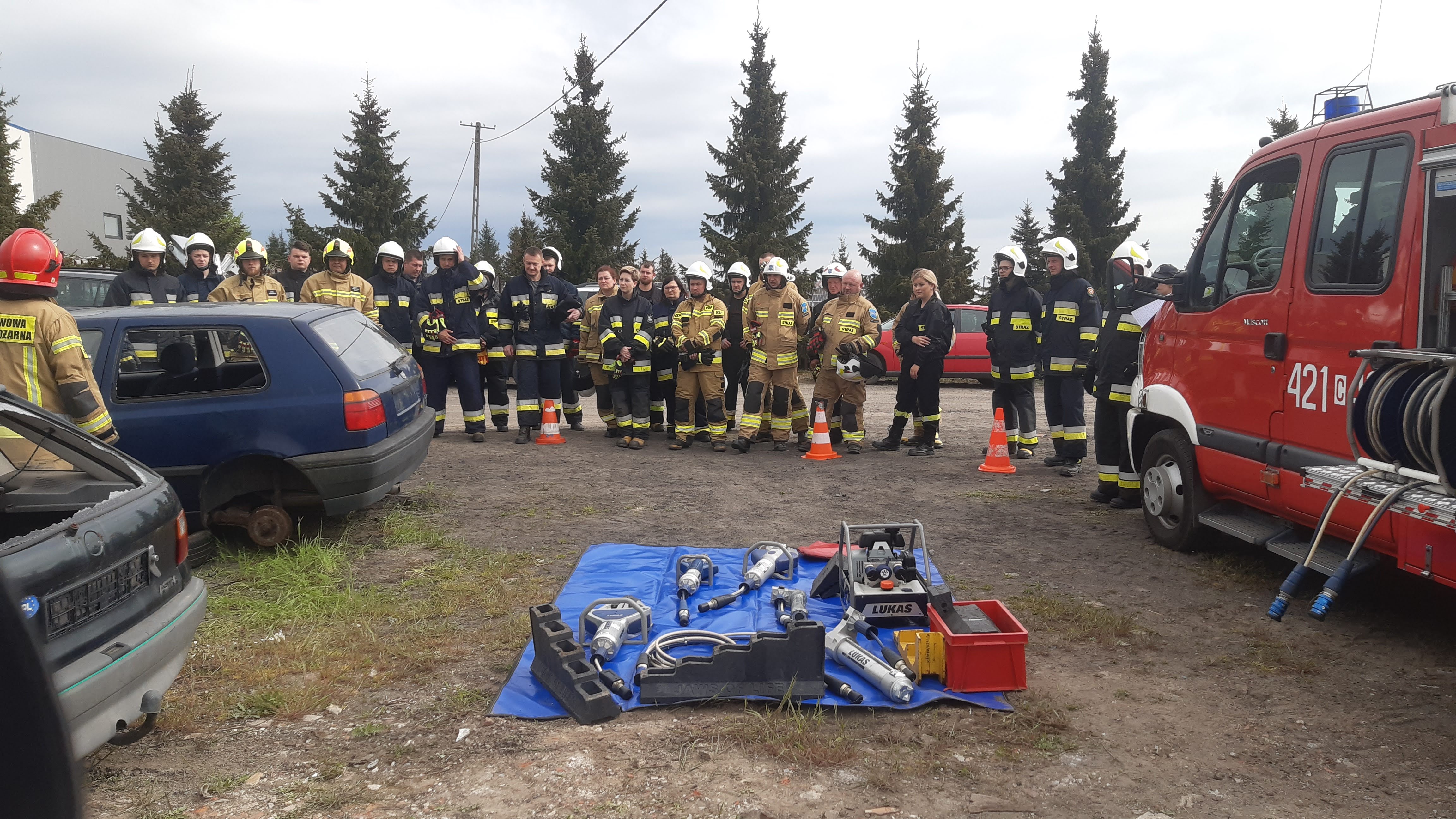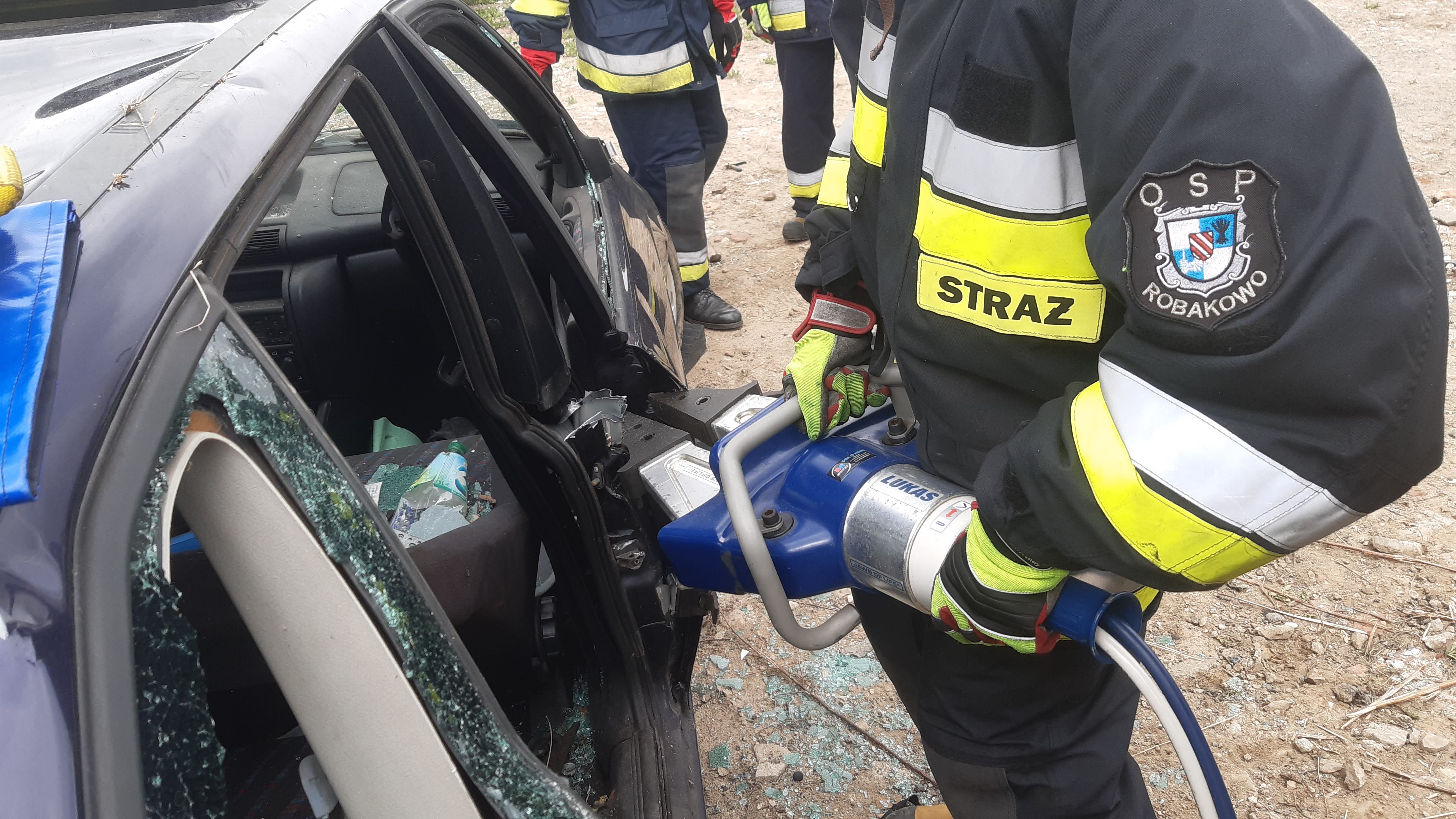 Po części teoretycznej przystąpiono do ćwiczeń praktycznych, gdzie przy użyciu sprzętu hydraulicznego i innych narzędzi stabilizowano pojazdy, usuwano ich poszczególne elementy oraz wykonywano dostęp do osób poszkodowanych.