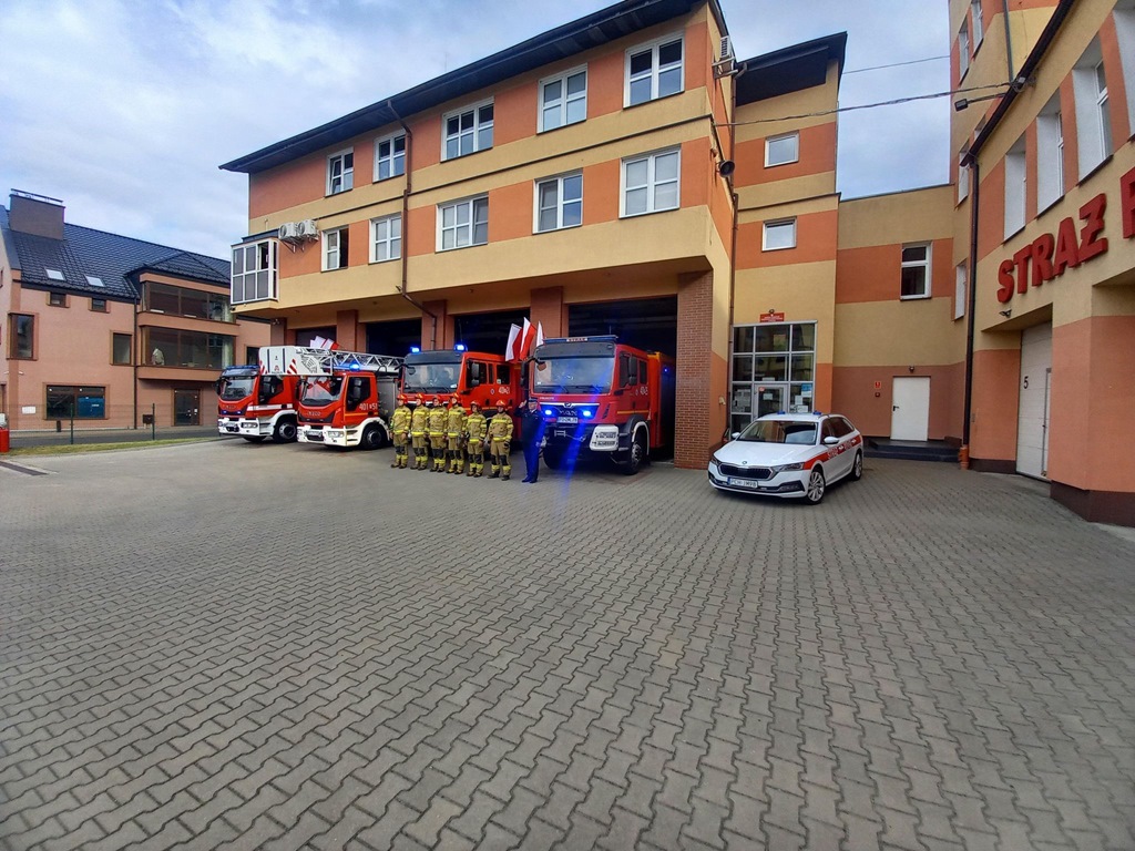 Punktualnie o godz. 17:00, właczono sygnały świetlno-dźwiękowe w samochodach ratowniwniczo gaśniczych oraz syrenę alarmową. W ten sposób przez jedną minutę strażacy upamiętnili wydarzenia i bohaterów biorących udział w walce o Niepodległą Polskę.