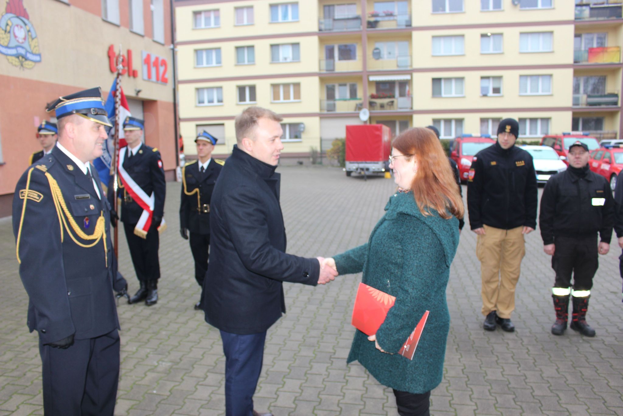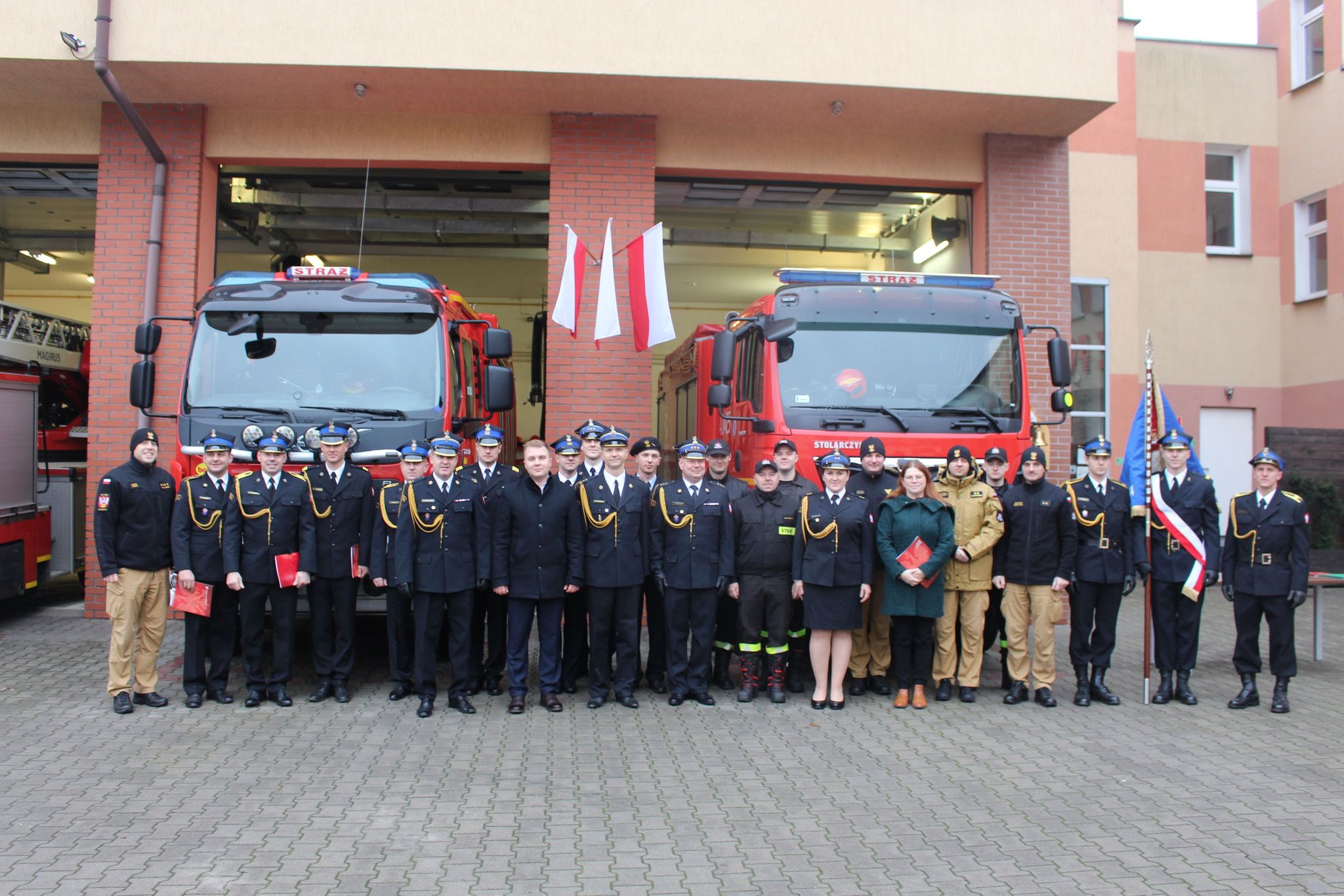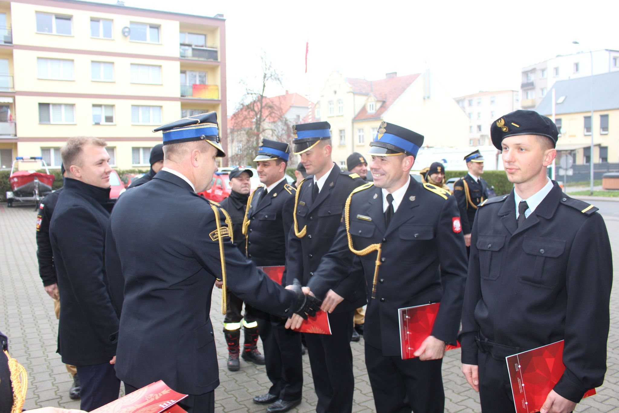 Wręczenia decyzji o awansie na wyższy stopień służbowy oraz decyzji nagrodowych dokonał Komendant Powiatowy Państwowej Straży Pożarnej w Chodzieży mł. bryg. Maciej Zwierzykowski oraz Starosta Chodzieski Pan Adrian Urbański, którzy podziękowali strażakom za ofiarną i profesjonalną służbę oraz za duże zaangażowanie w realizację zadań i obowiązków służbowych. W uroczystej zmianie służby uczestniczyło całe kierownictwo chodzieskiej komendy, wszyscy funkcjonariusze systemu codziennego, pracownicy korpusu służby cywilnej oraz zmiany służbowe JRG.